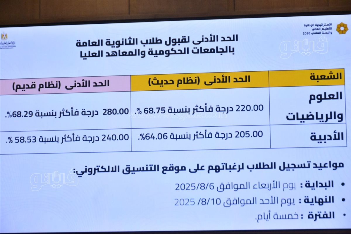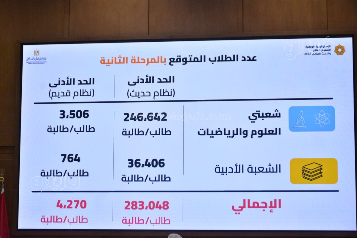 الحد الأدنى للمرحلة الثانية من تنسيق الجامعات 2025، الشعبة العلمية 68.75% والأدبية 64.06%
