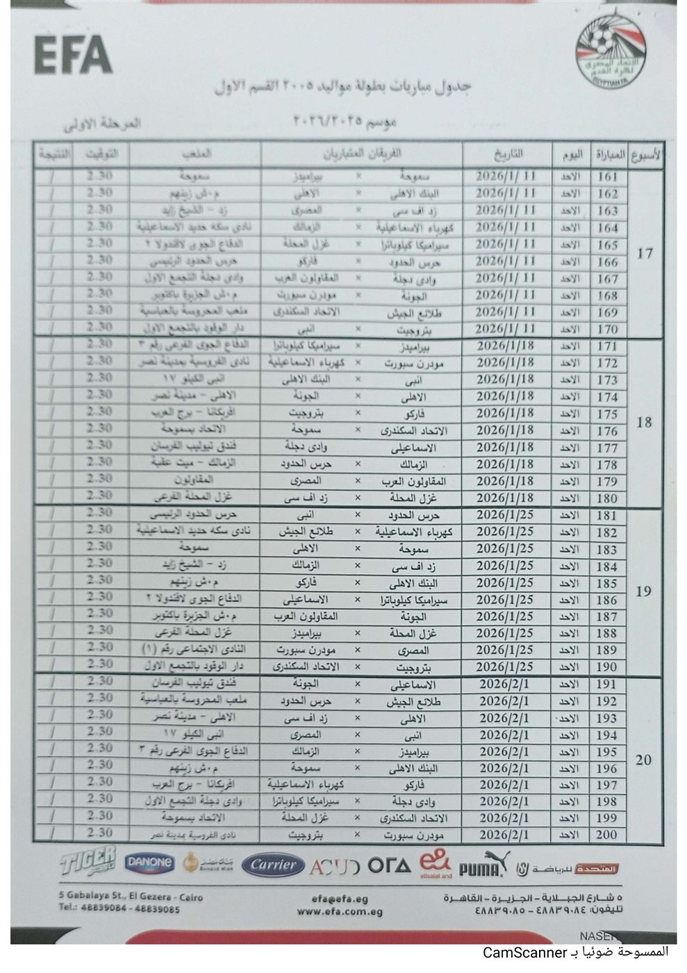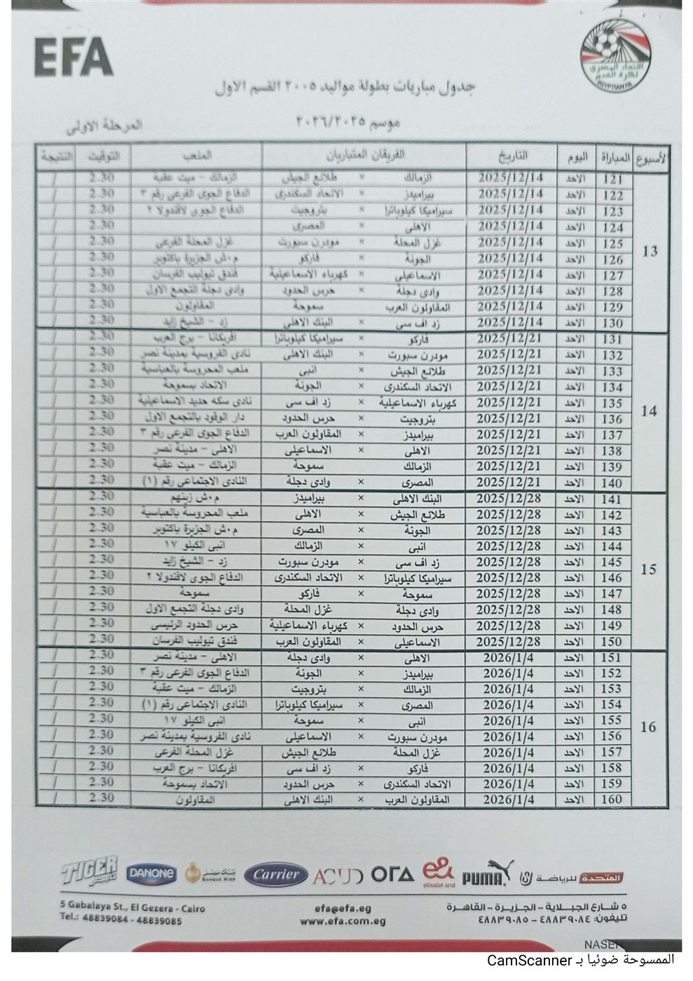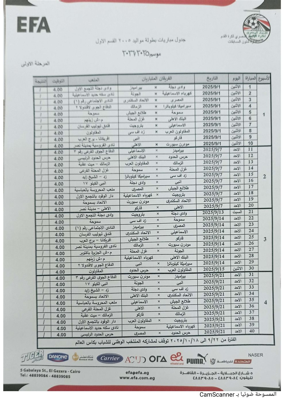نفس ترتيب لقاءات الكبار.. جدول مباريات دوري الجمهورية للشباب مواليد 2005