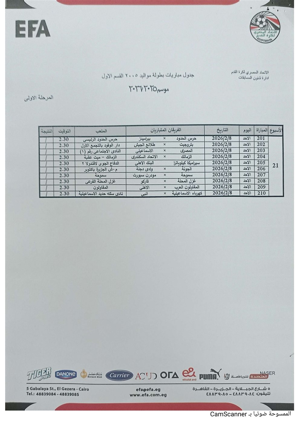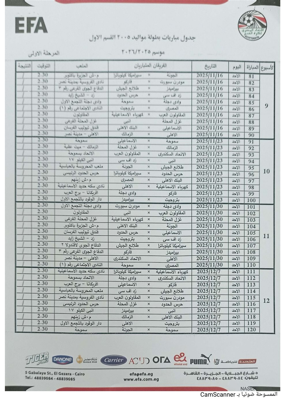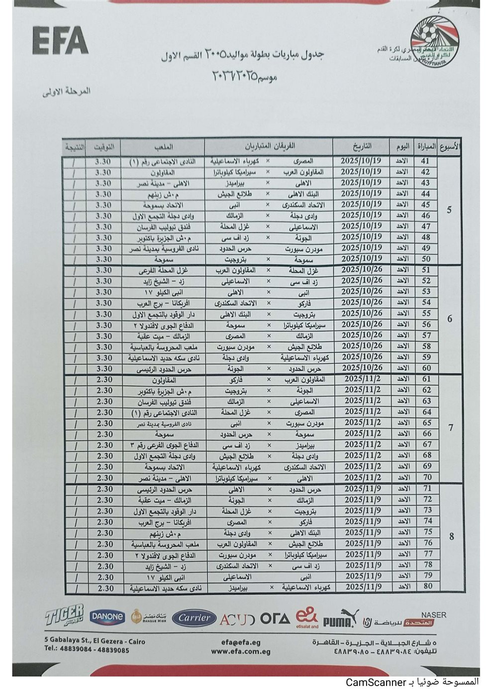 نفس ترتيب لقاءات الكبار.. جدول مباريات دوري الجمهورية للشباب مواليد 2005