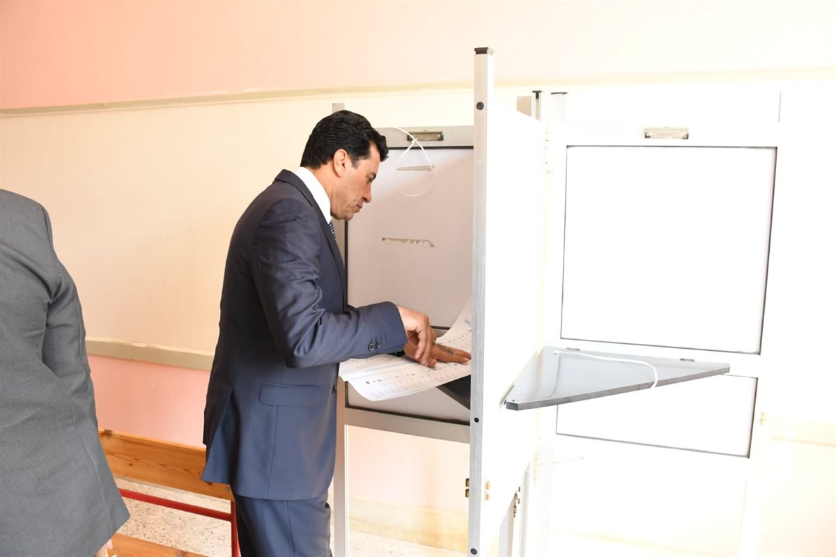 وزير الشباب والرياضة يدلي بصوته في انتخابات الشيوخ
