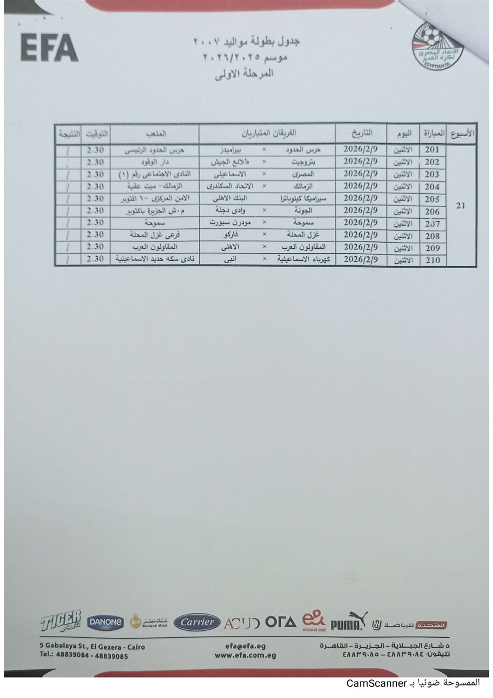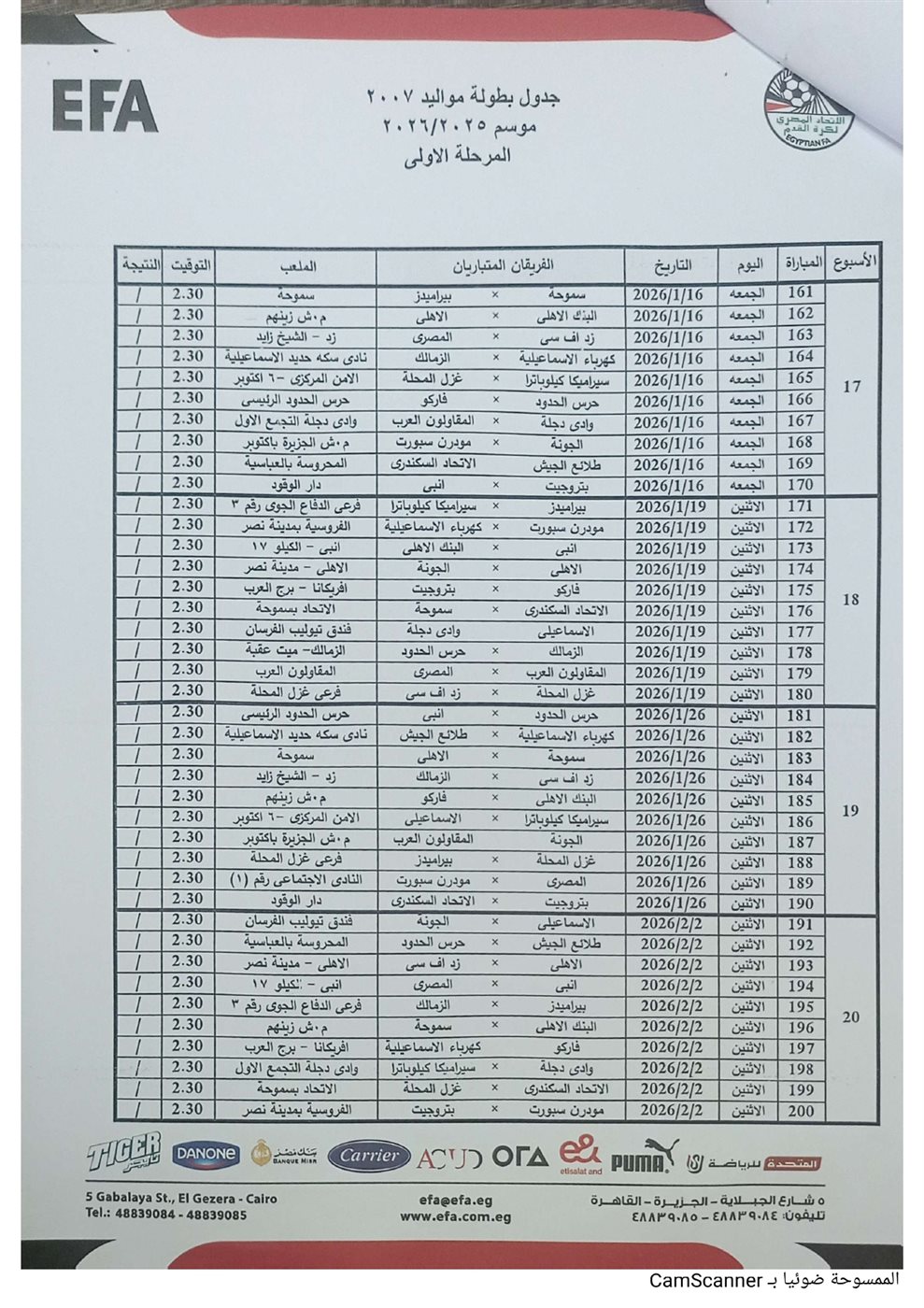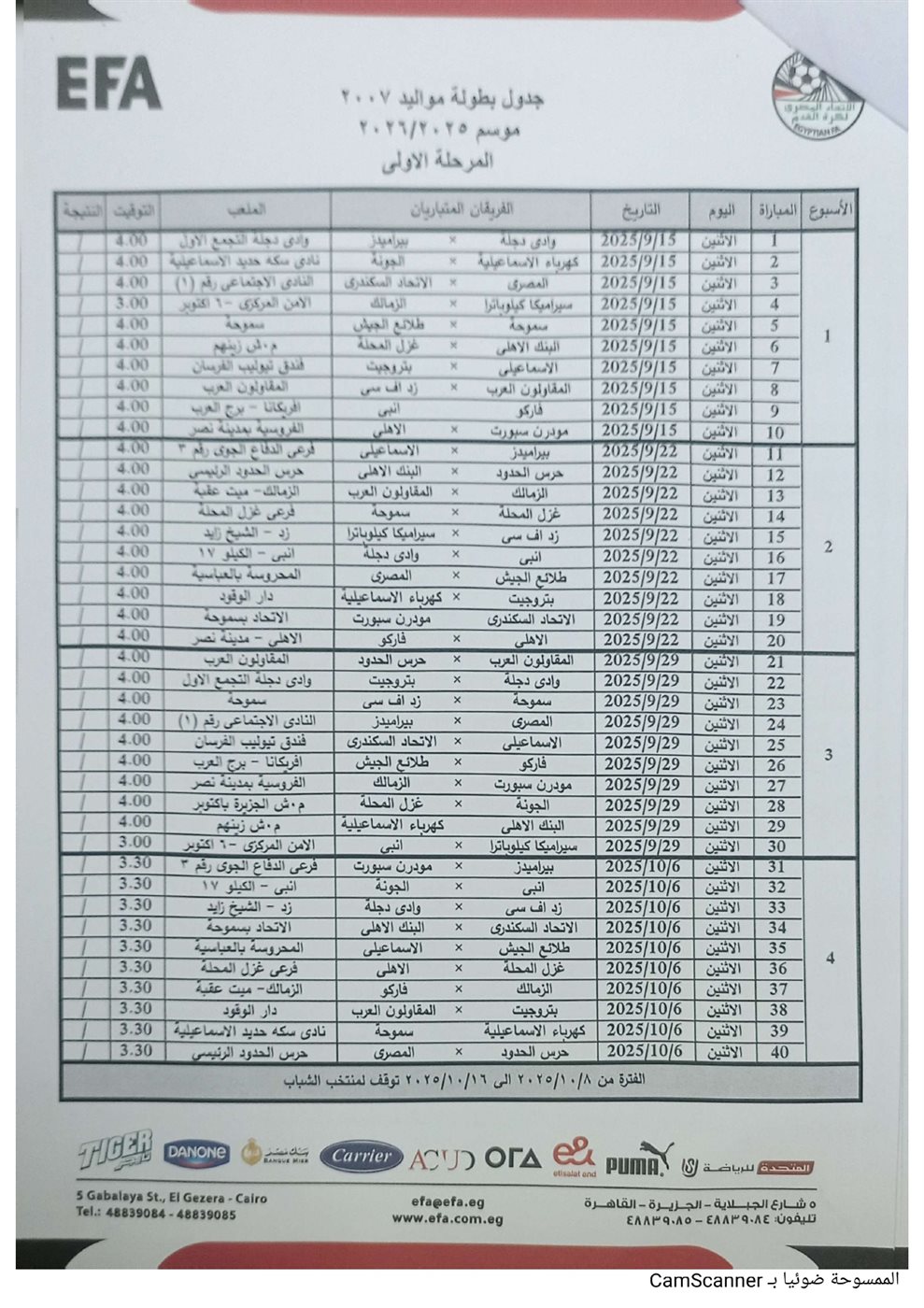 جدول مباريات دوري الجمهورية للناشئين مواليد 2007 المرحلة الأولي