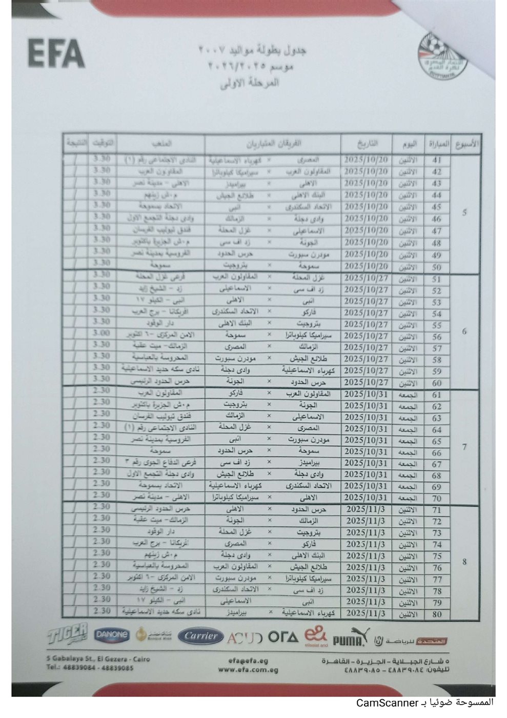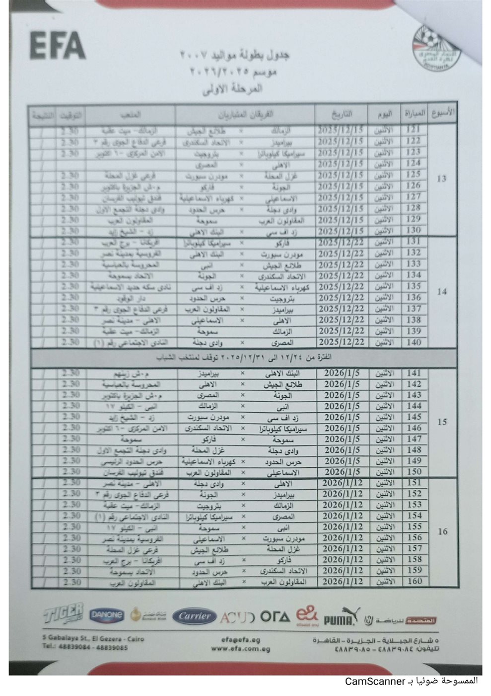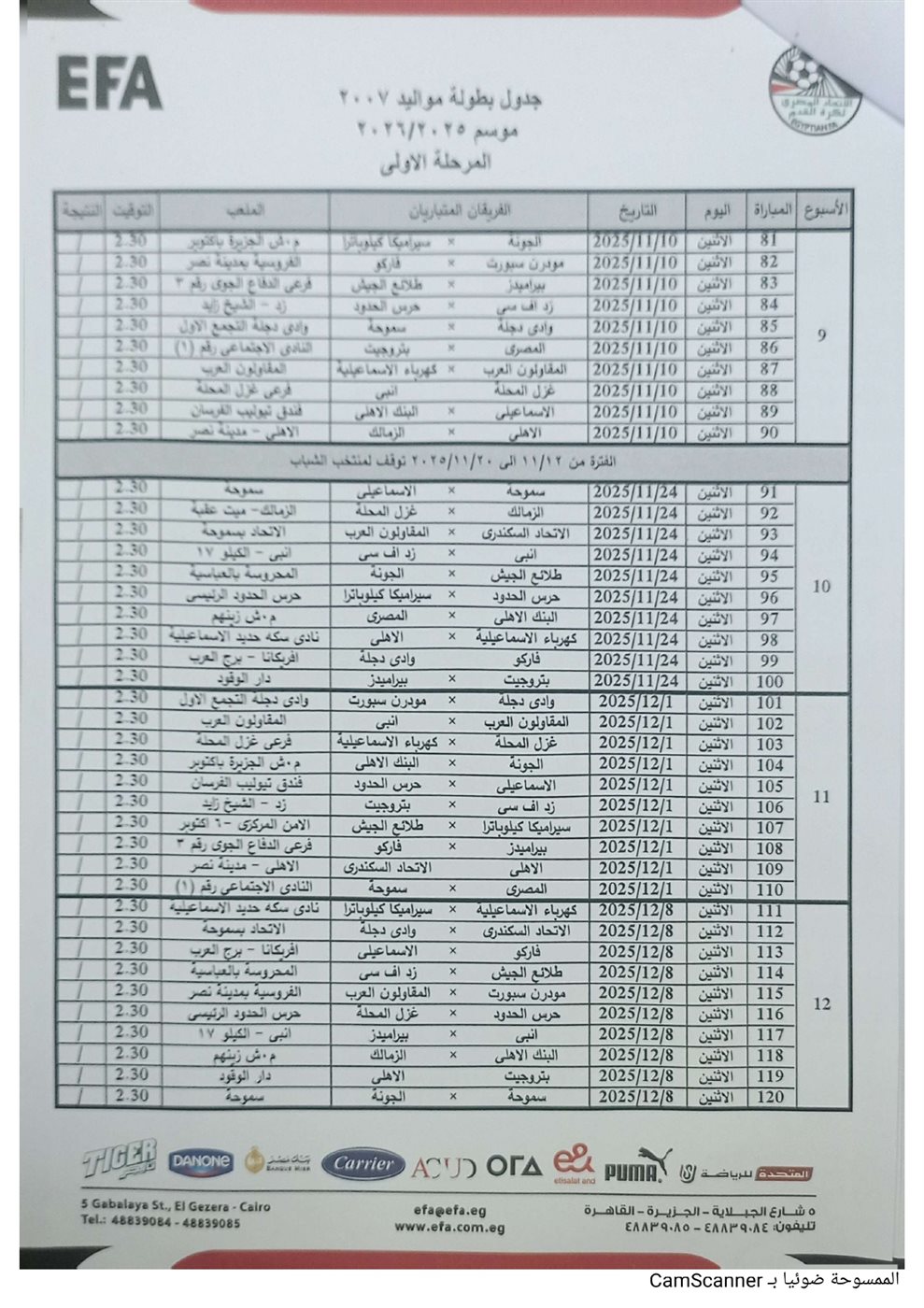 جدول مباريات دوري الجمهورية للناشئين مواليد 2007 المرحلة الأولي
