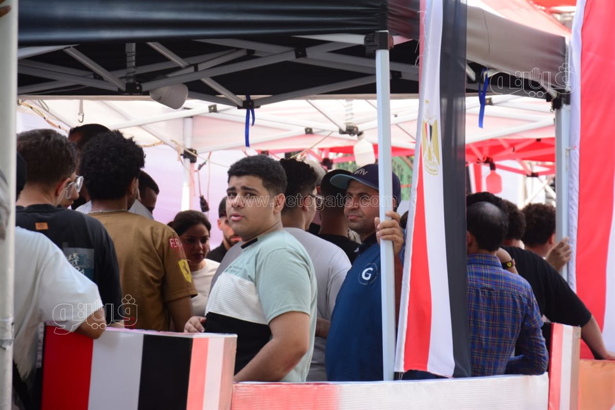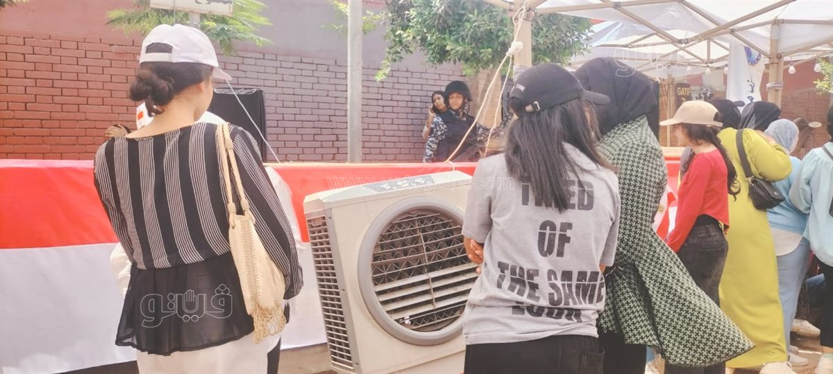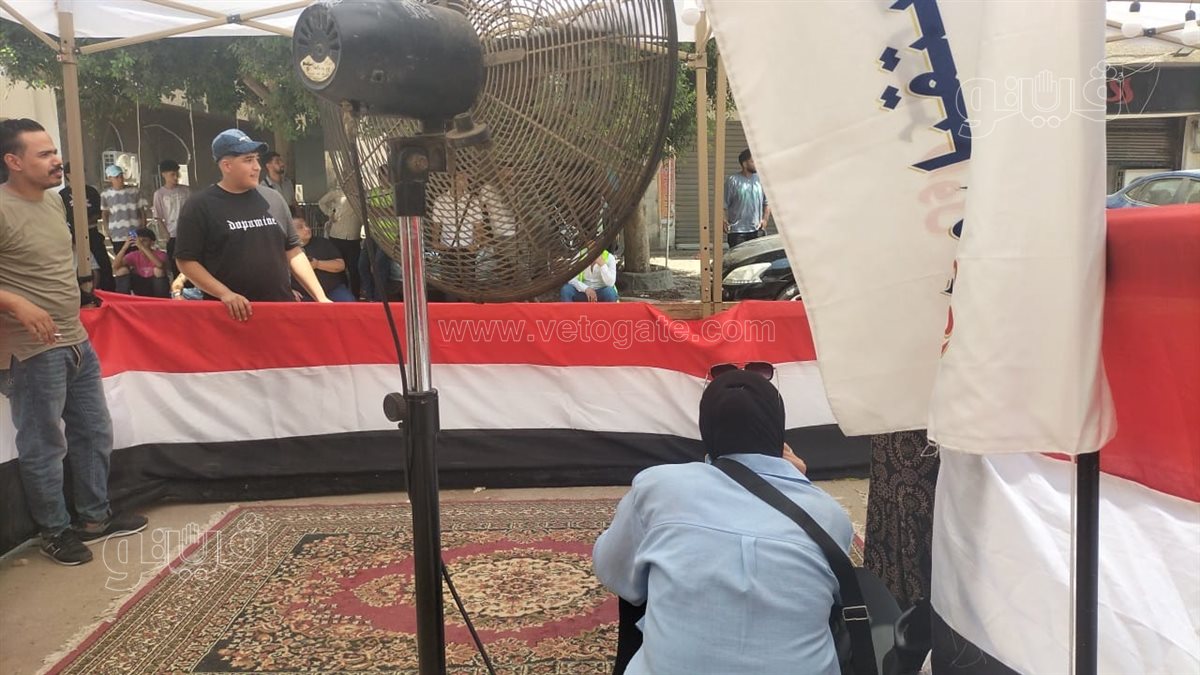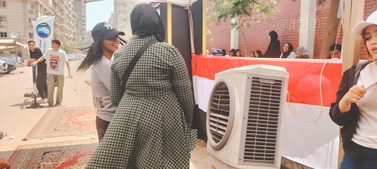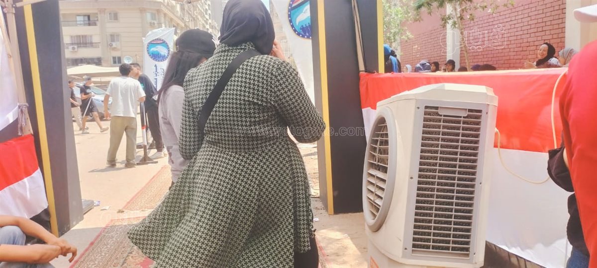 انتخابات مجلس الشيوخ 2025، وقف عدد من المواطنين الذين ينتظرون دورهم للإدلاء بأصواتهم في انتخابات مجلس الشيوخ أسفل الخيمة الانتخابية وأمام المراوح التي توفرها الدولة بمحافظتي القاهرة والجيزة للاحتماء من درجة حرارة الطقس المرتفعة وأشعة الشمس الساطعة.