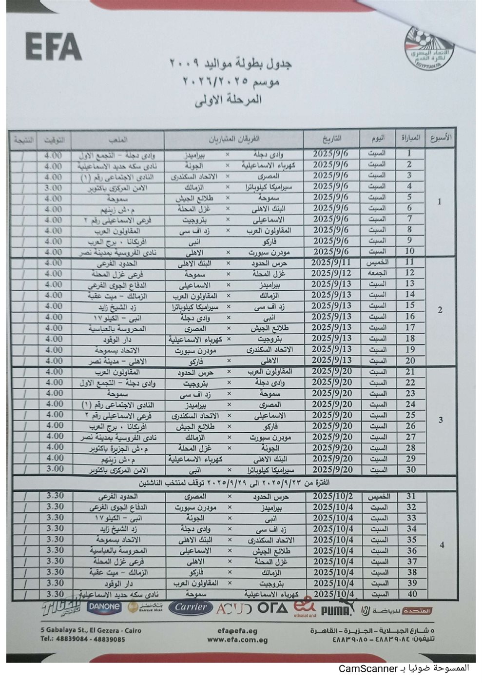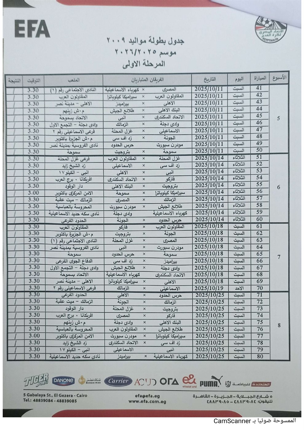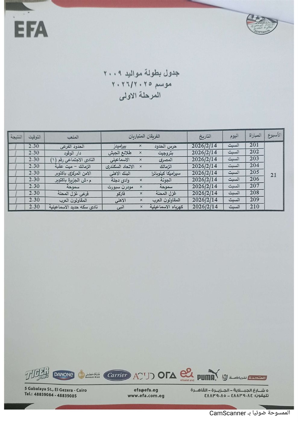 جدول مباريات دوري الجمهورية للناشئين مواليد 2009 المرحلة الأولى