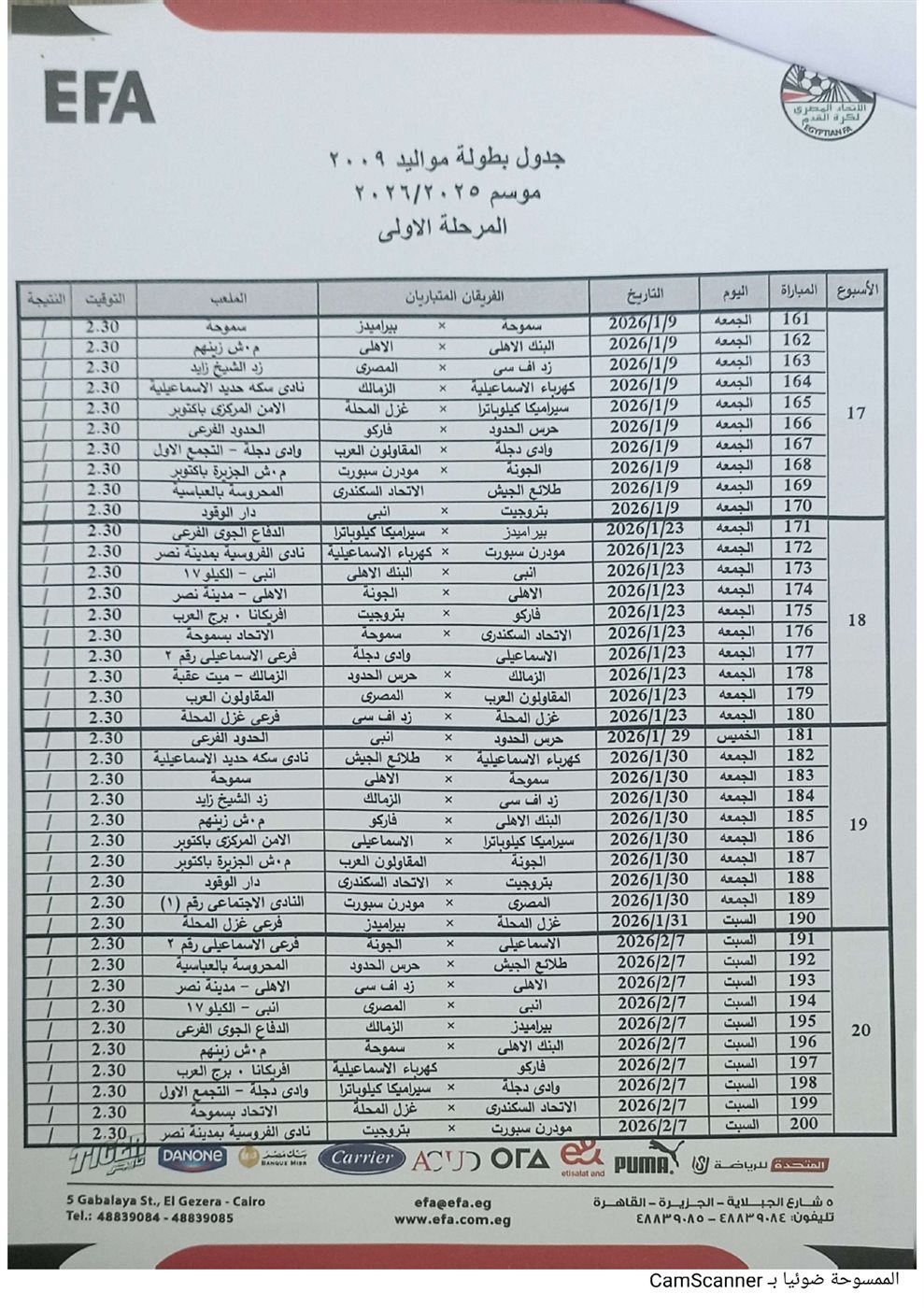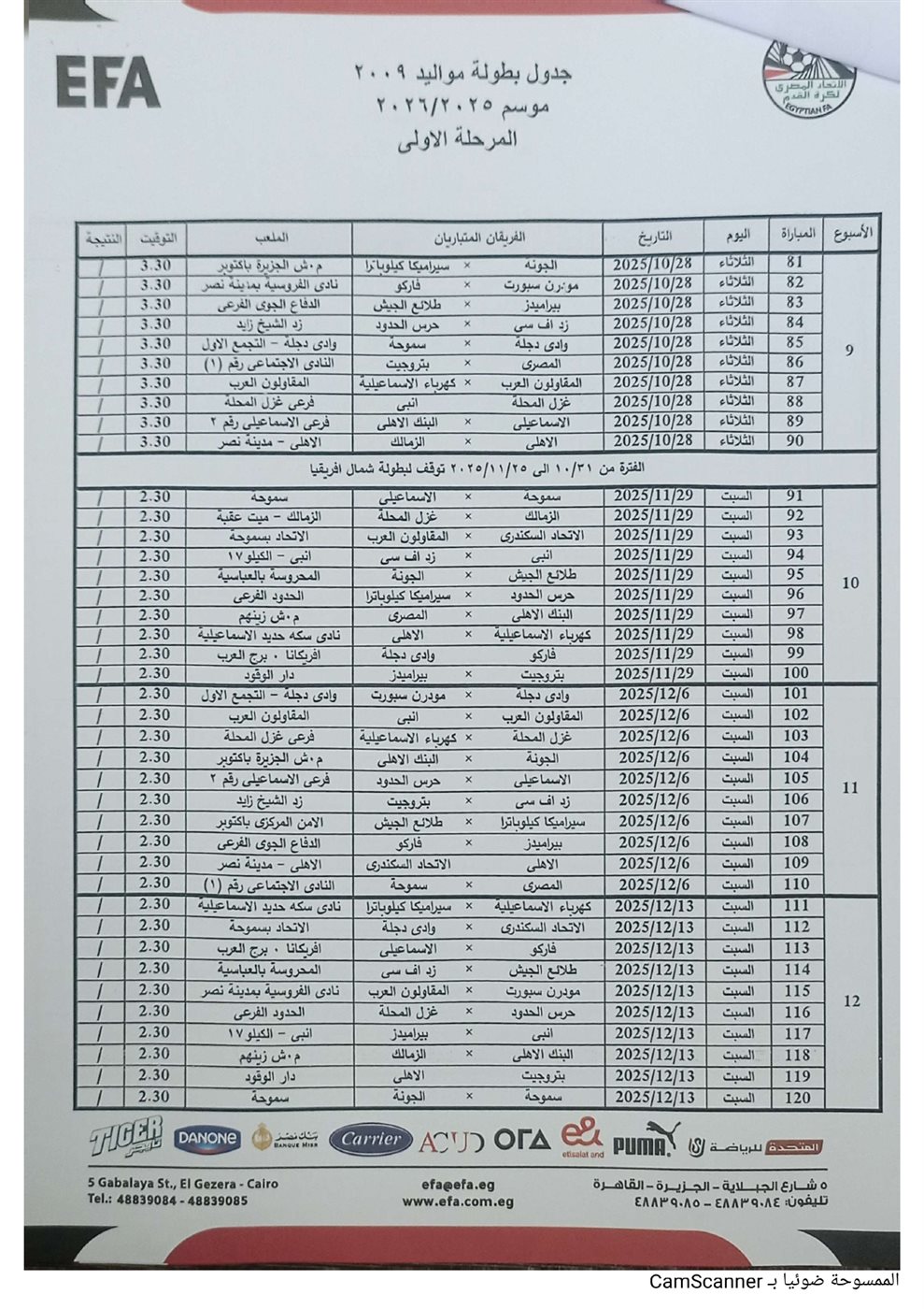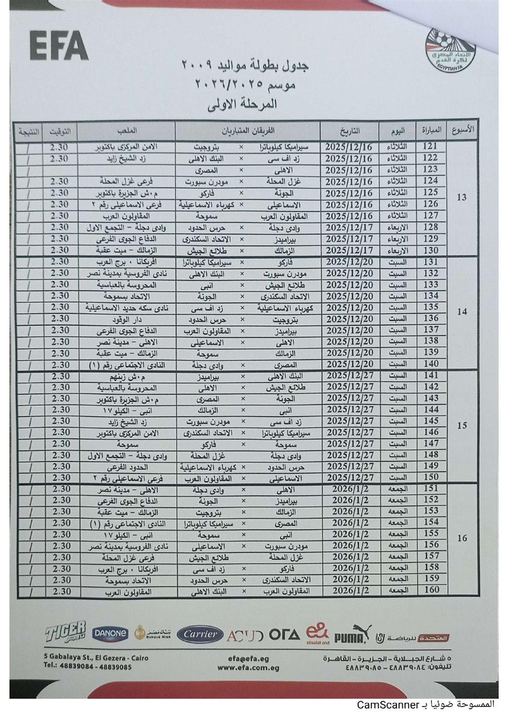 جدول مباريات دوري الجمهورية للناشئين مواليد 2009 المرحلة الأولى