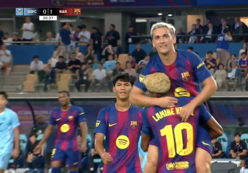 تقدم فريق برشلونة الإسباني، بثلاثة أهداف مقابل لاشيء أمام فريق دايجو الكوري بالشوط الأول، وهي المباراة الثالثة للفريق الكتالوني بجولته الآسيوية قبل انطلاق الموسم الجديد.
