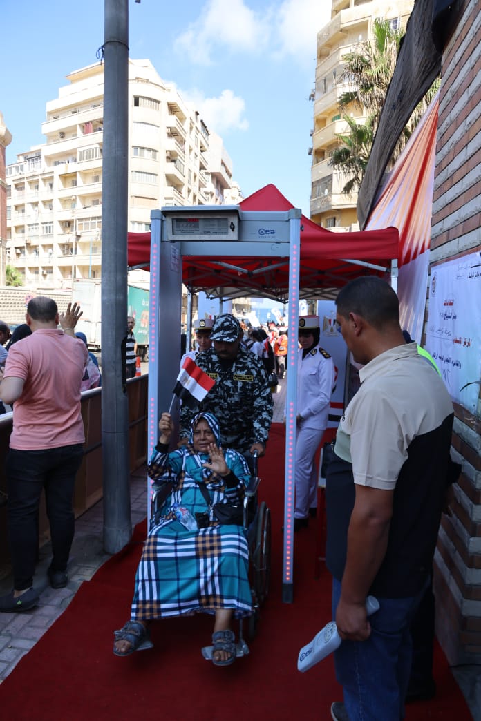 شهدت مدرسة اللواء محمد نجيب بمنطقة الهانوفيل بحي العجمي غرب الإسكندرية، توافد العشرات من الناخبين أمام لجنة الاقتراع حاملين عام مصر يبلغ طوله 40 مترا، وذلك لتشجيع المواطنين علي النزول الي اللجان للإدلاء بأصواتهم في انتخابات مجلس الشيوخ 2025.
