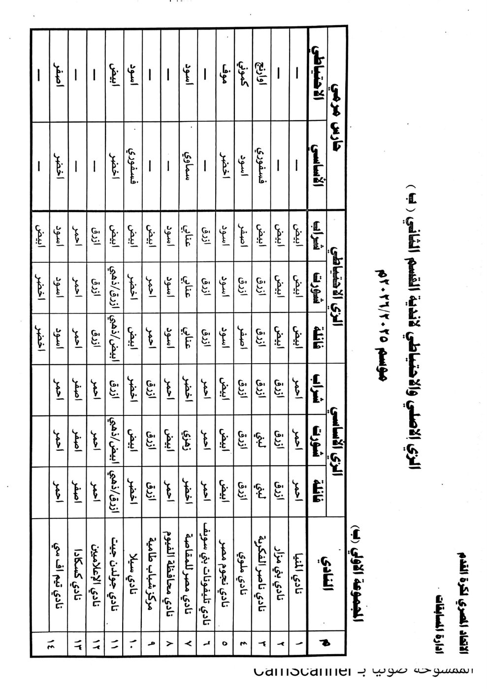 جدول القسم الثاني المجموعة الأولي ب موسم 2025 -2026