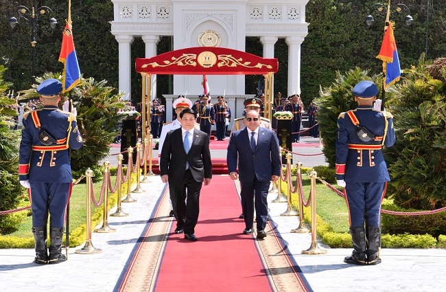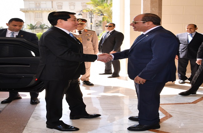 استقبل الرئيس عبد الفتاح السيسي اليوم، في قصر الاتحادية، رئيس جمهورية فيتنام الاشتراكية لوونج كوونج، حيث جرت مراسم الاستقبال الرسمية، وتم عزف السلامين الوطنيين لجمهورية مصر العربية ولجمهورية فيتنام الاشتراكية.