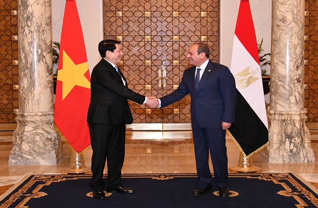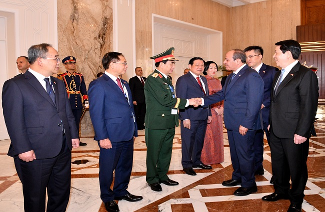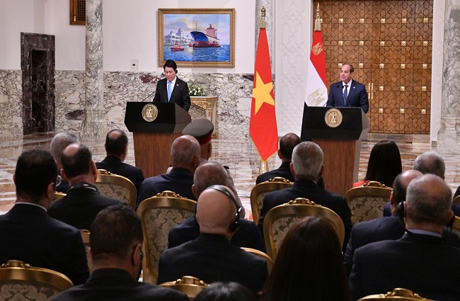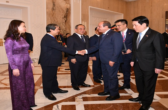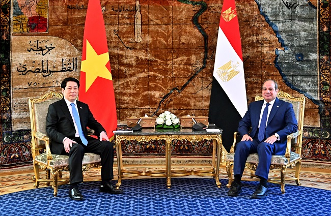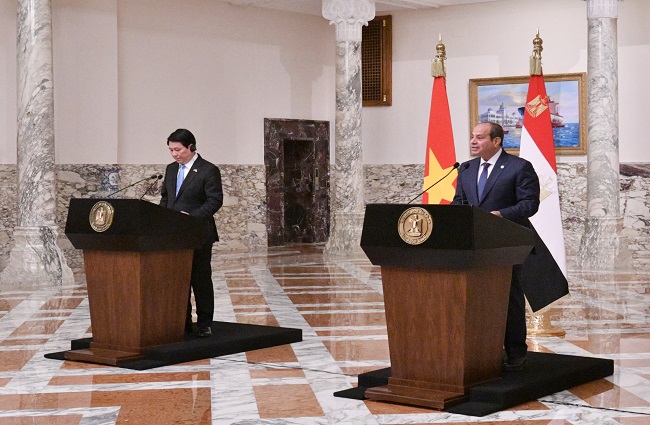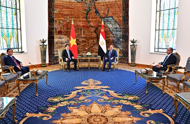 وصرح المتحدث الرسمي باسم رئاسة الجمهورية بأن الرئيسين عقدا اجتماعًا مغلقًا، أعقبته جلسة مباحثات موسعة بمشاركة وفدي البلدين، حيث تباحث الجانبان حول سبل تعزيز العلاقات الثنائية بين مصر وفيتنام والبناء على الزخم الذي تشهده العلاقات في الفترة الأخيرة، خاصة في المجالات السياسية، والاقتصادية، والتجارية، والاستثمارية، والتعليمية والسياحية.