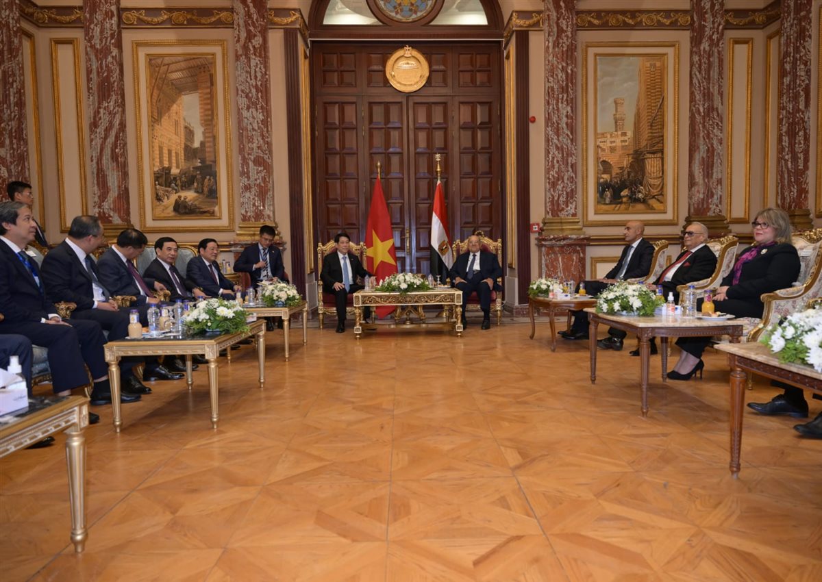 وأكد الرئيس الفيتنامي اهتمام بلاده بتعزيز علاقاتها مع مصر، باعتبارهما شريكين مهمين في محيطهما الإقليمي والدولي، مشيرًا إلى الاتفاق مع الرئيس عبد الفتاح السيسي على ترفيع العلاقات إلى مستوى الشراكة الشاملة القائمة على التعاون المشترك في شتى المجالات.