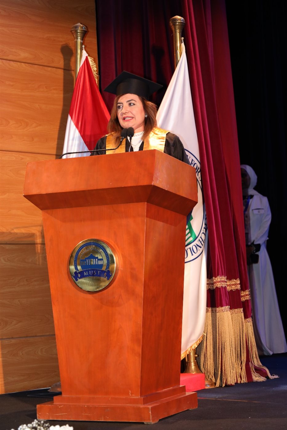 وأعرب الدكتور نهاد المحبوب القائم بأعمال رئيس جامعة مصر للعلوم والتكنولوجيا عن فخره بتخريج هذه الدفعة من كلية طب الأسنان، مؤكدا أن الكلية تُعد من أبرز الكليات في الجامعة، وقال مخاطبا الخريجين: "لقد بذلتم جهدا كبيرا في سبيل الوصول إلى هذه اللحظة، واليوم أنتم على أعتاب حياة مهنية تتطلب منكم الالتزام، والرحمة، والحرص على التعلم المستمر. أنتم سفراء لجامعتكم في كل مكان، فكونوا على قدر المسؤولية، واصنعوا فرقًا حقيقيًا في حياة الناس".