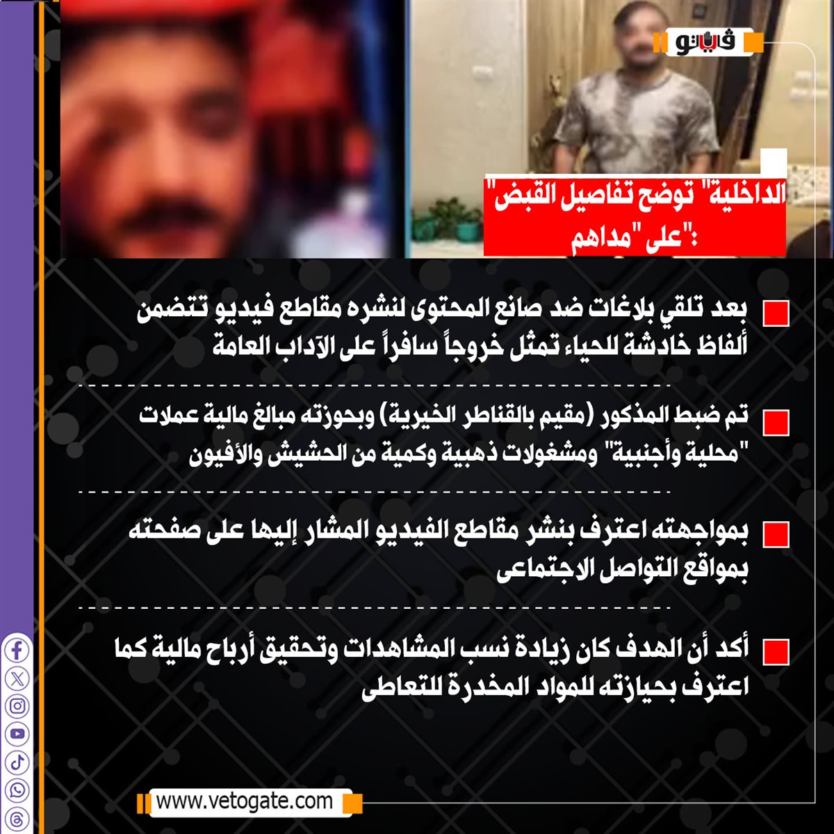 توسعت الحملات لتشمل ضبط عدد من التيك توكرز، مؤثرين، وصناع محتوى على منصات السوشيال ميديا، وسط دعم شعبي ملحوظ، وترحيب من المتابعين الذين ضاقوا ذرعًا بما أسموه “فوضى الترند الرخيص”.. فلماذا تحركت وزارة الداخلية الآن؟ وما هي الرسائل التي تحملها هذه الحملة؟ وكيف ترتبط بجوانب أخرى كغسيل الأموال والتأثير على وعي المجتمع؟ وغيرها من التساؤلات نجيب عنها وفقا للمعلومات الأمنية ومصادر لـ “فيتو”.