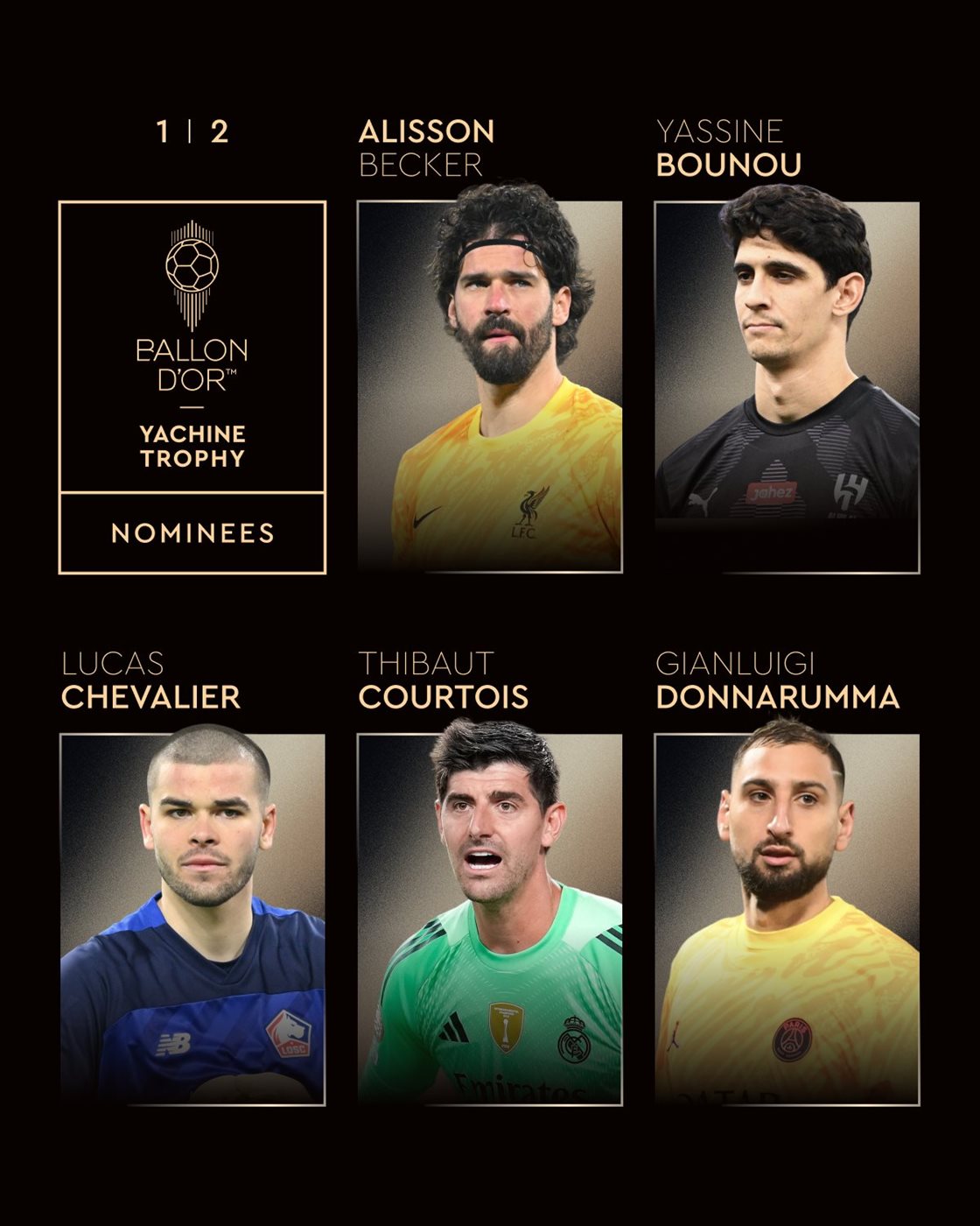 اعلنت مجلة “فرانس فوتبول” قائمة المرشحين العشرة لجائزة "ياشين" للرجال، التي تُمنح لأفضل حارس مرمى في العالم، كتالي.