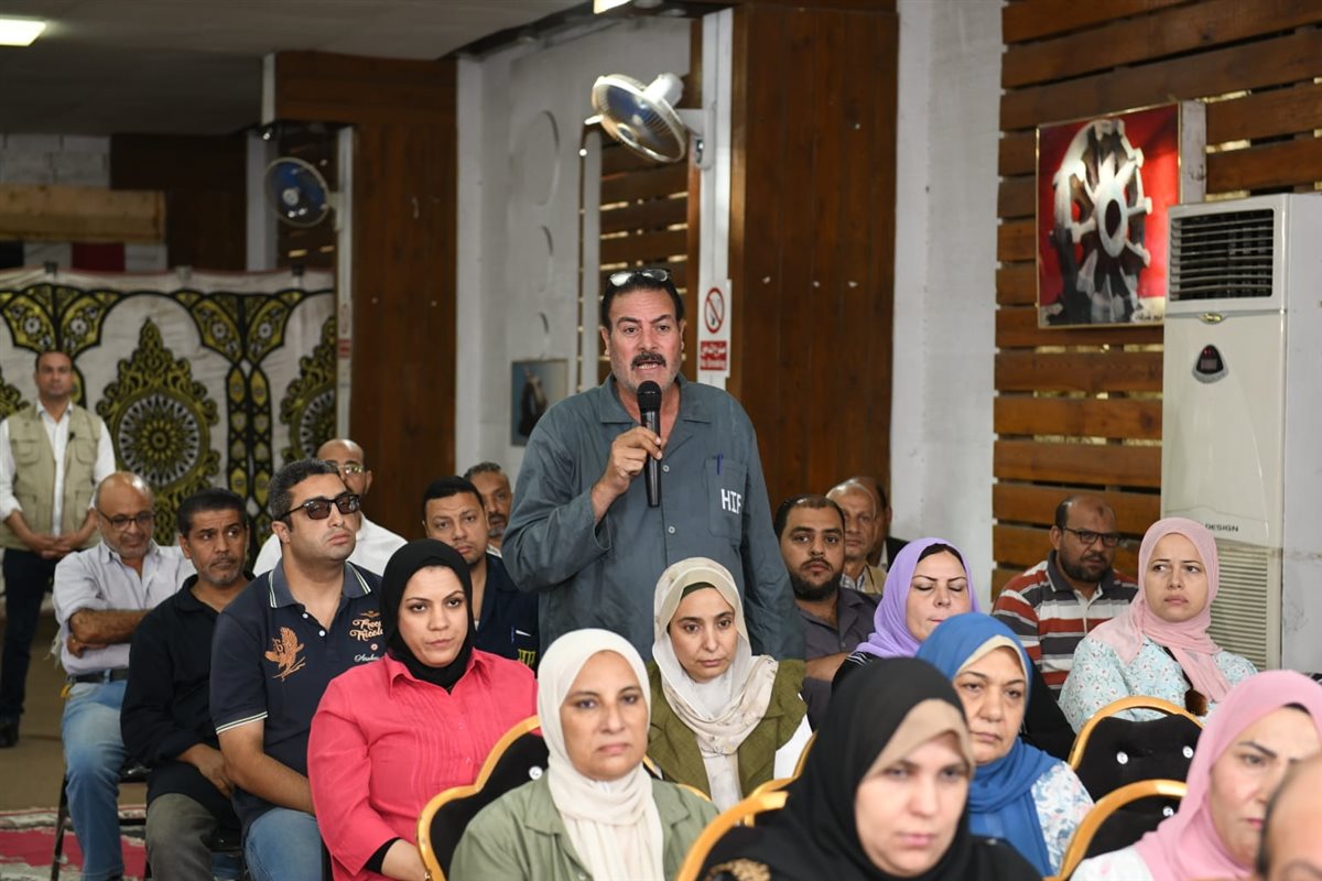 وزير الإنتاج الحربي يجتمع مع العاملين بشركة حلوان للمسبوكات