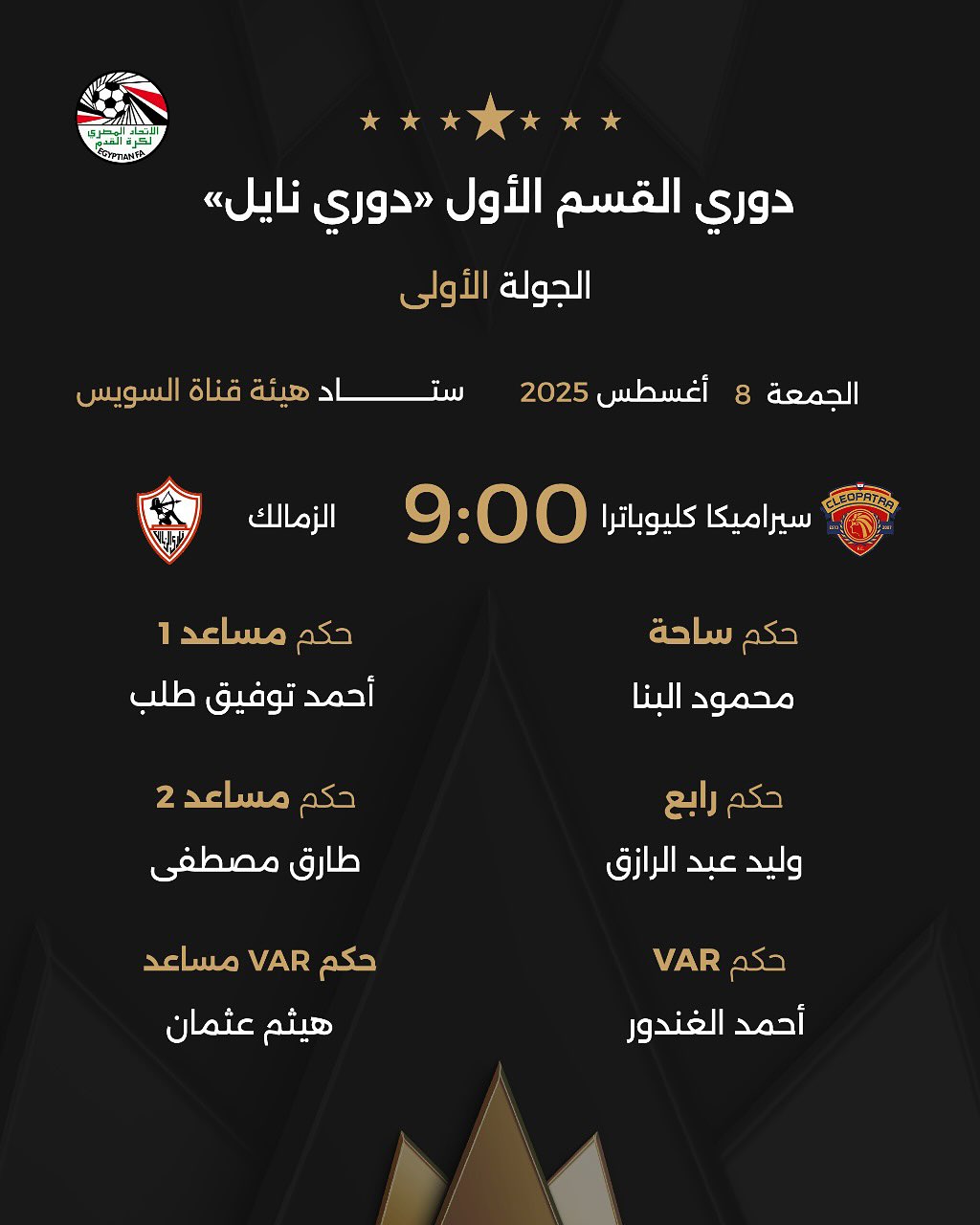 حكام مباراة الزمالك وسيراميكا كليوباترا