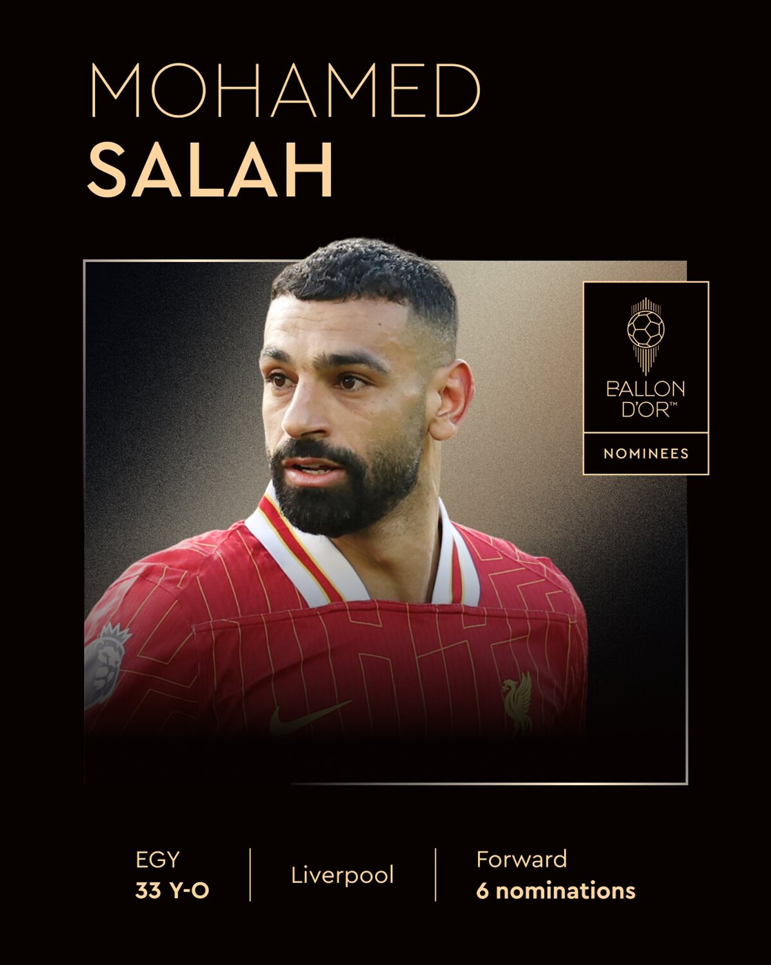 محمد صلاح على رأس 30 لاعبًا مرشحًا للفوز بـ الكرة الذهبية 2025.. بونو ينافس دوناروما وبيكر على أفضل حارس.. ومنافسة خماسية لأفضل مدرب