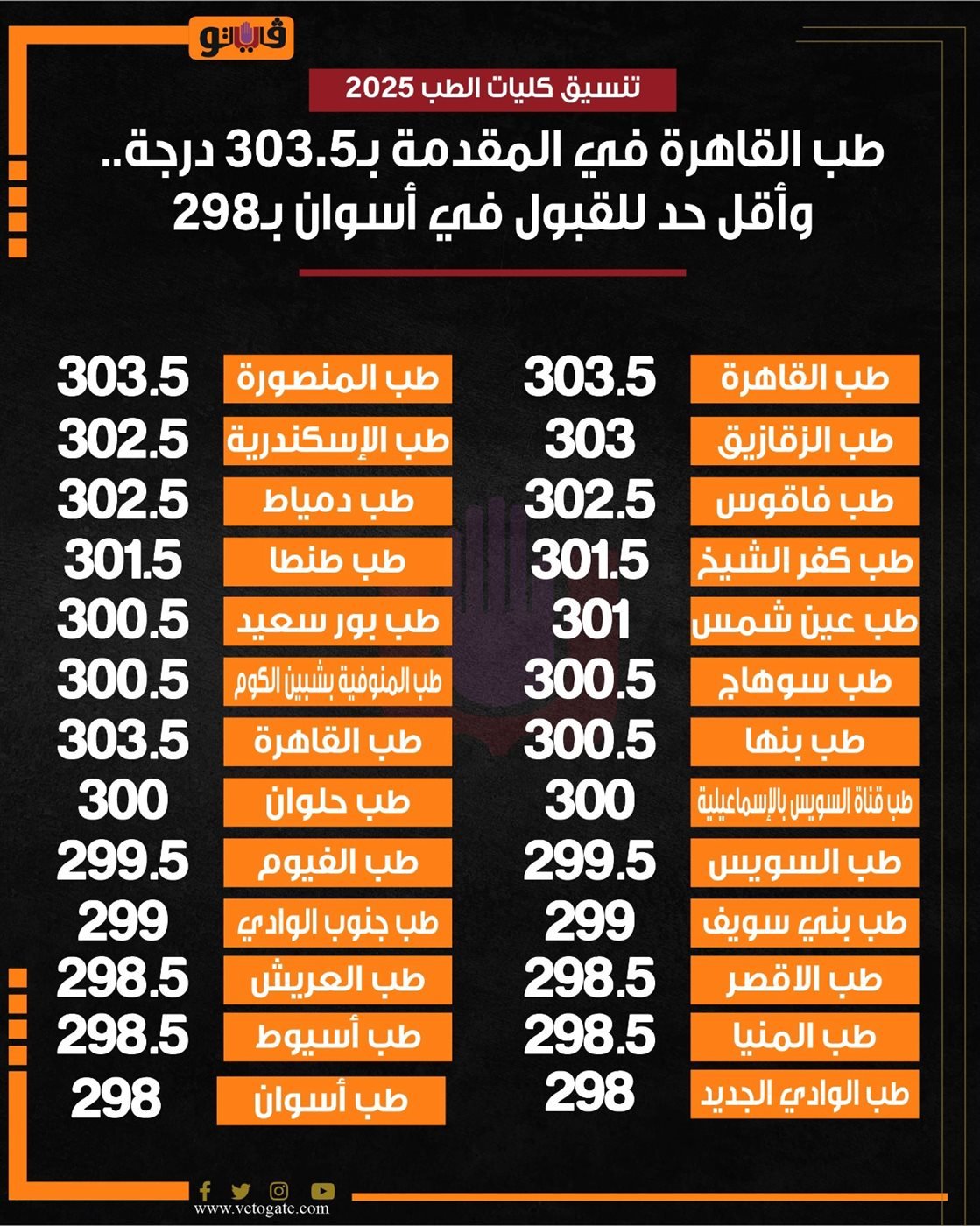 تنسيق الجامعات 2025، الحدود الدنيا للقبول بكليات الطب والهندسة والإعلام