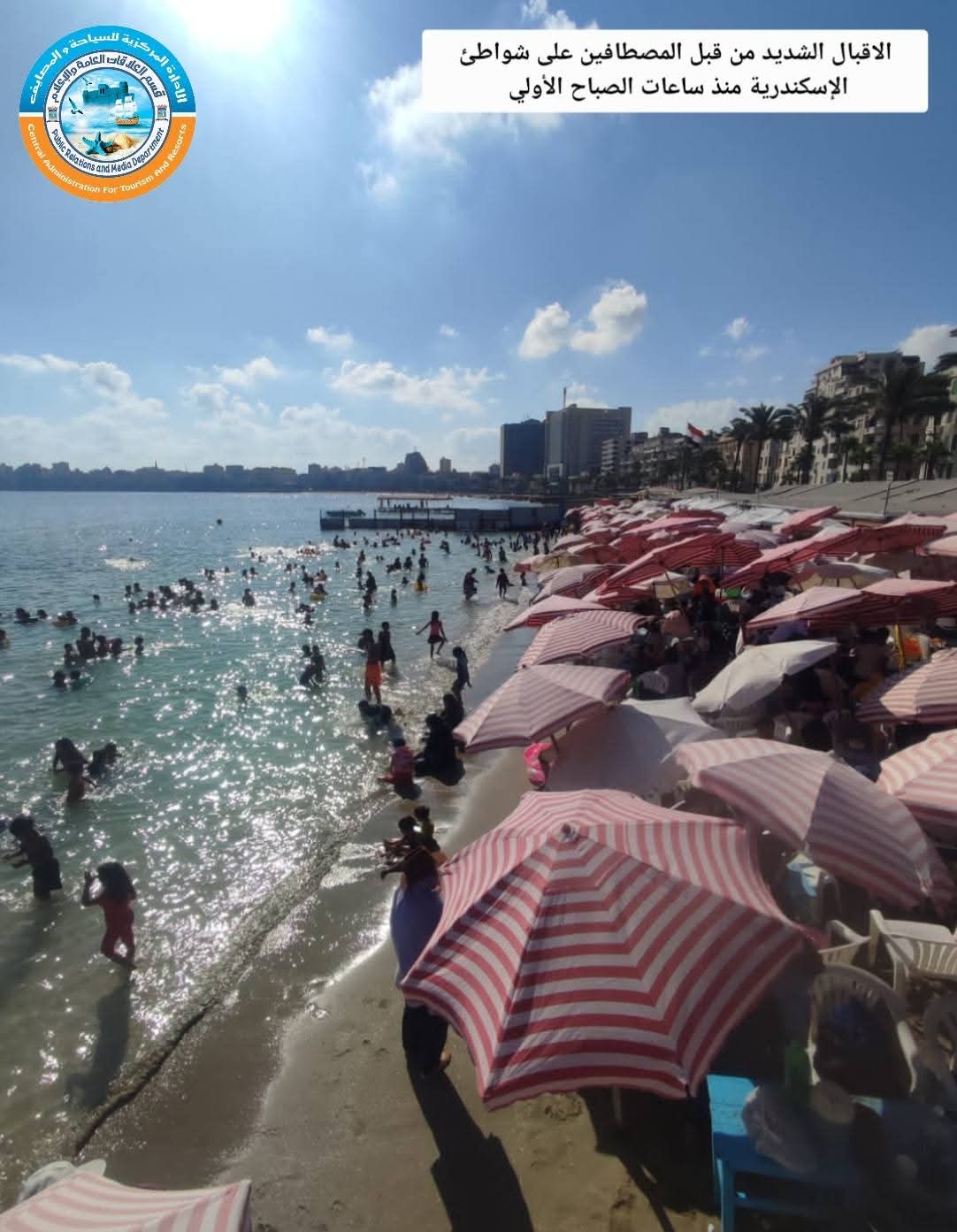 وأعلنت الإدارة المركزية للسياحة والمصايف بالإسكندرية نسب إشغال الشواطئ، حيث سجلت شواطئ القطاع الشرقي نسبة إشغال 100٪ “كاملة العدد”، وكانت الراية خضراء مع بحرٍ هادئ، أما شواطئ القطاع الغربي، فقد بلغت نسبة الإشغال 80 إلى ٩٠ %، مع حالة بحر معتدلة.