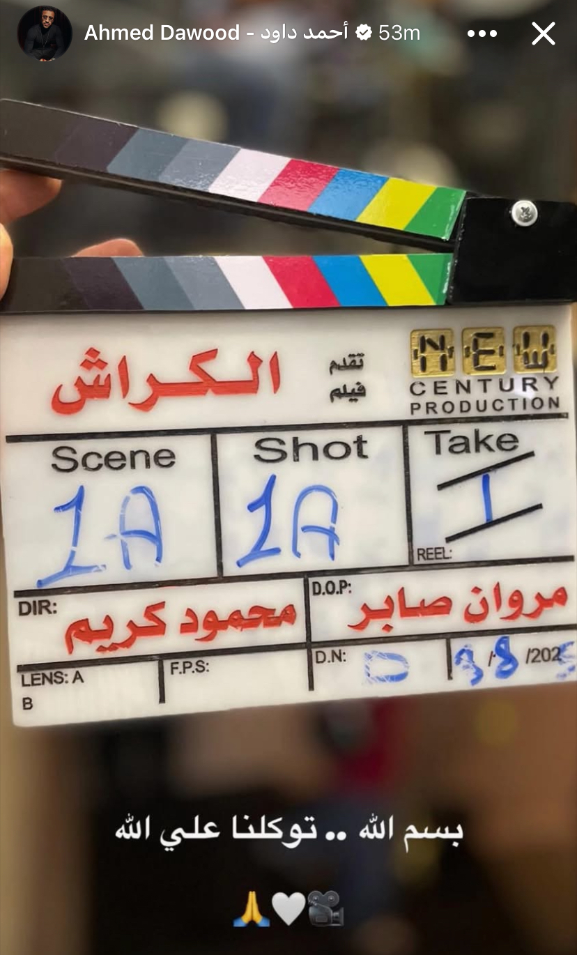 ونشر أحمد داود صورة كلاكيت الفيلم، وعلق عليها قائلا: “بسم الله.. توكلنا على الله”.