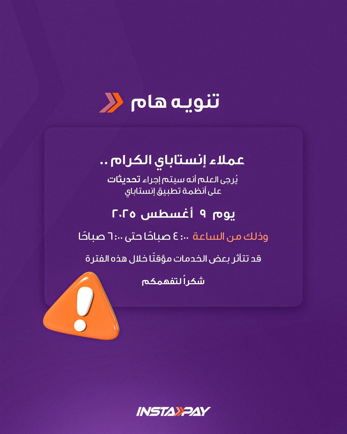 حدث الآن، توقف خدمات إنستاباي مؤقتا عن العمل وهذا موعد عودتها