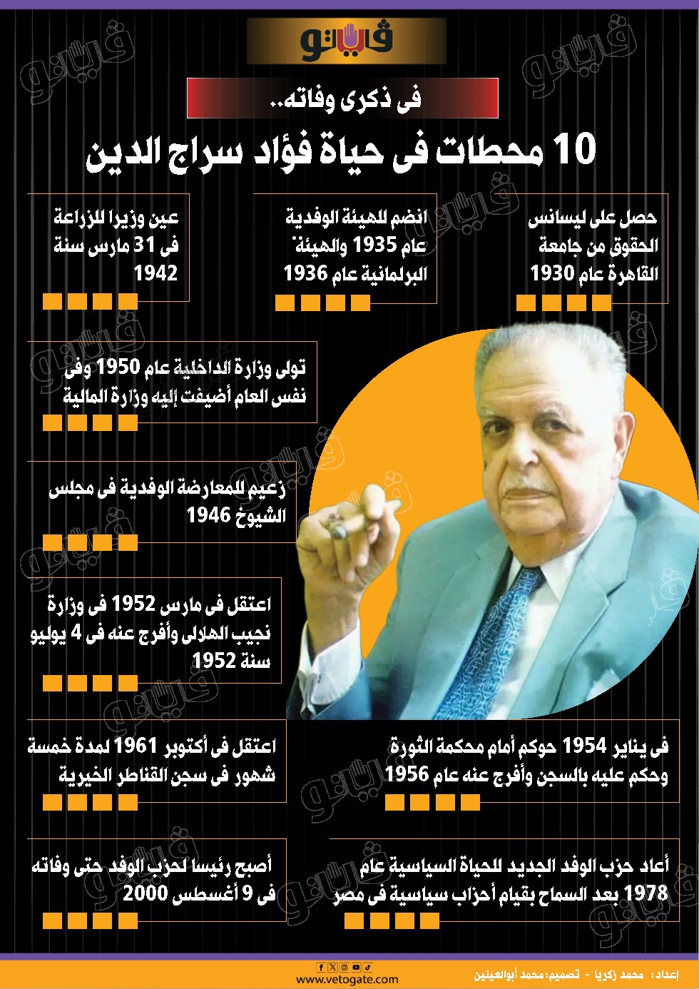 فى ذكرى وفاته.. 10 محطات فى حياة فؤاد سراج الدين (إنفوجراف)