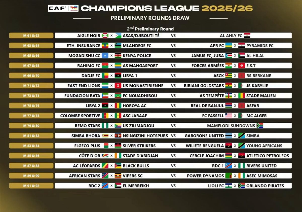 مواجهات الدوري التمهيدي لدوري أبطال إفريقيا 2025 -2026