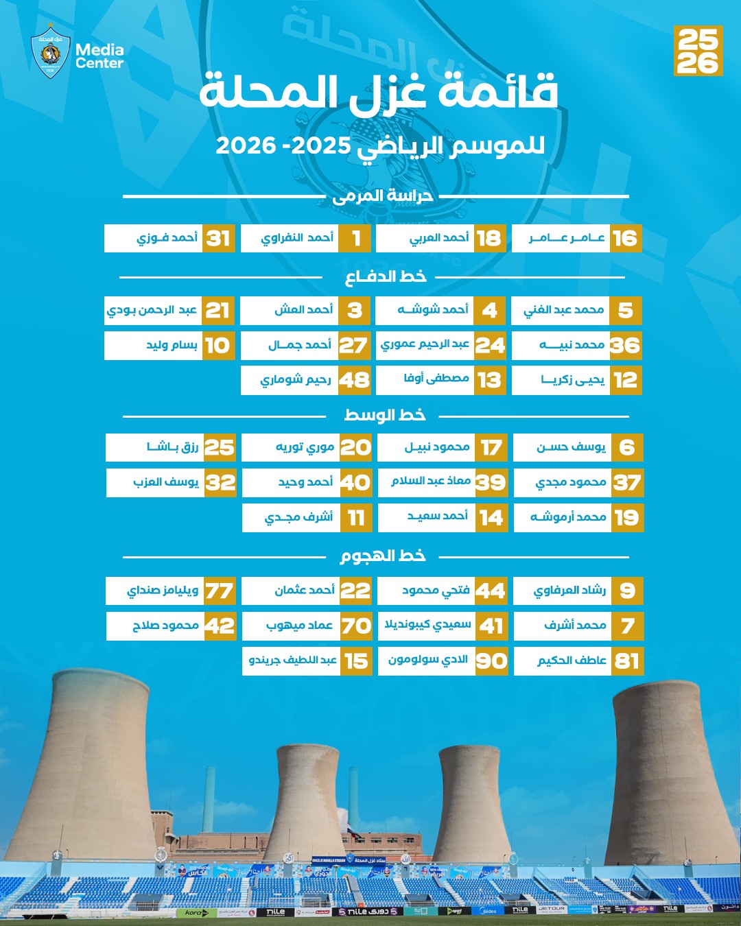 قائمة غزل المحلة الرسمي للموسم الجديد 2025ـ2026