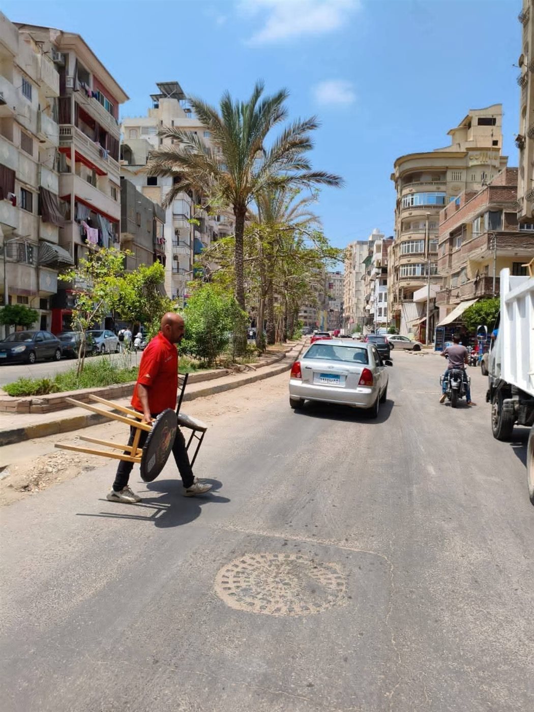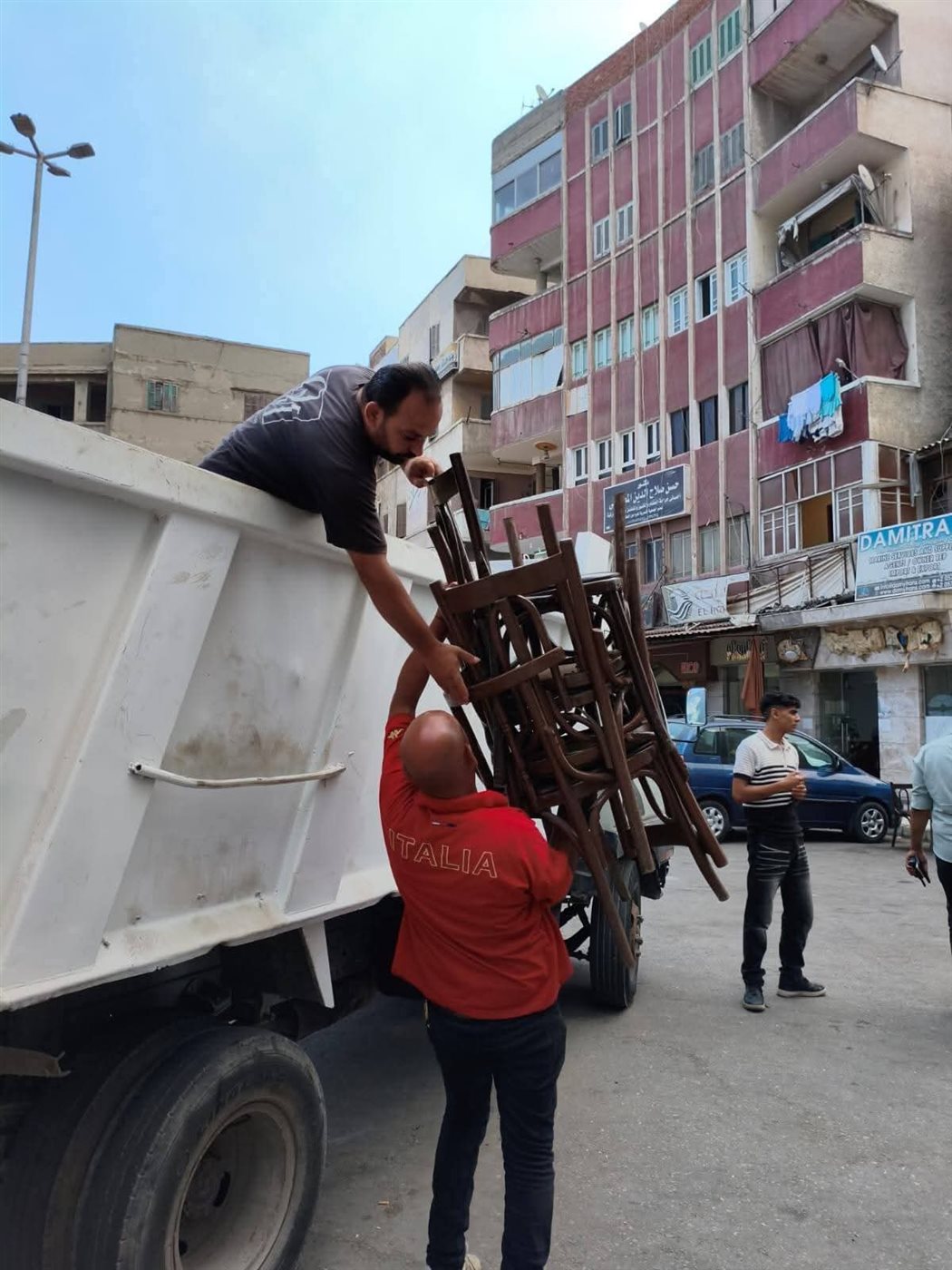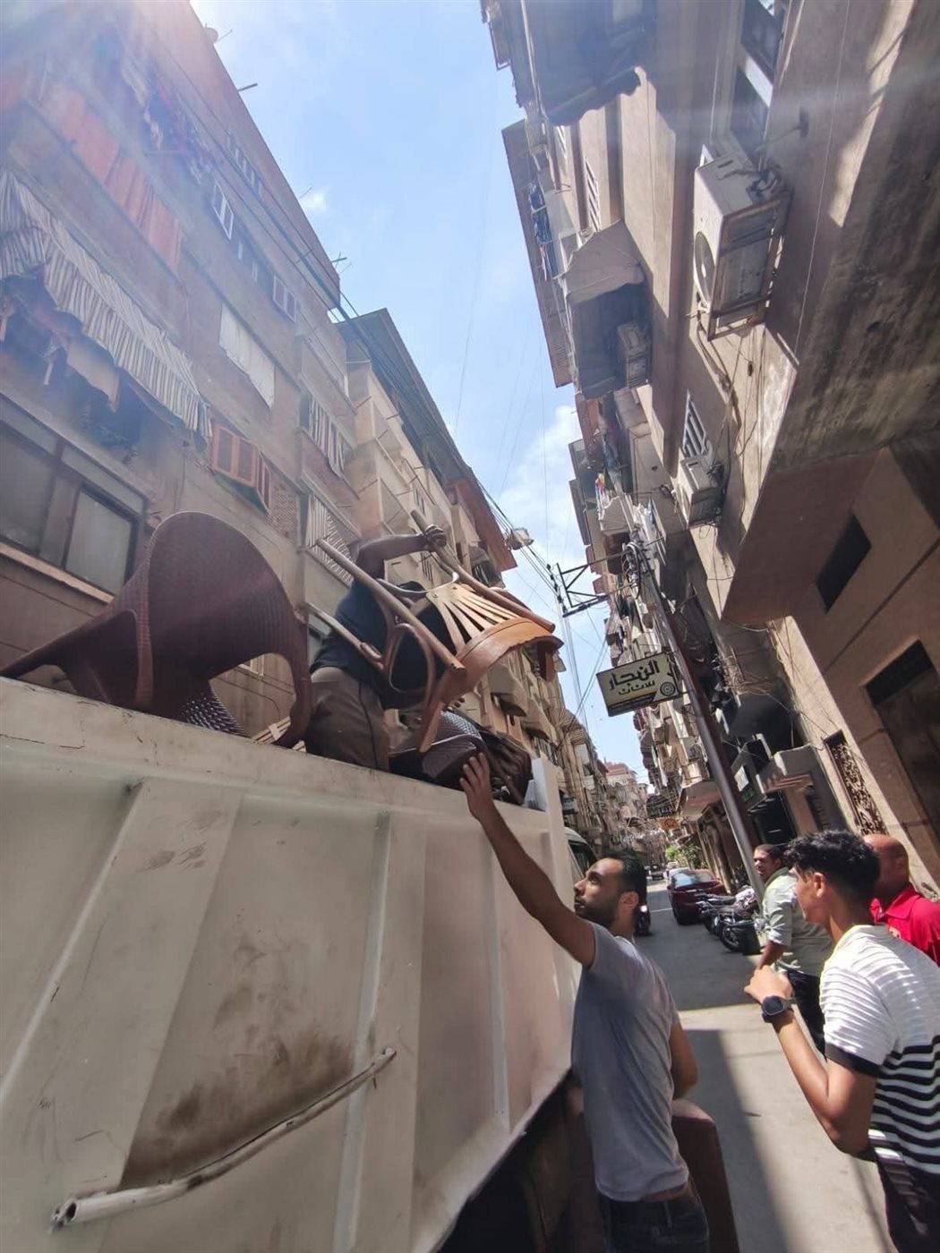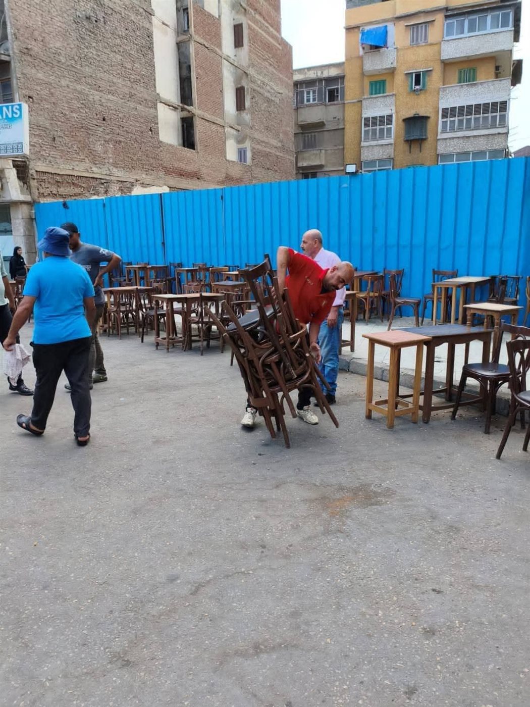 صوت معدات الرفع، وحركة الرجال الذين يعملون بلا توقف، والمارة الذين يقفون على جانبي الطريق يتابعون المشهد، كلها كانت علامات على أن يومًا مختلفًا يمر على المنطقة. الأكشاك والبسطات التي كانت تعيق المرور أُزيلت، والكراسي والطاولات التي احتلت الأرصفة تراجعت إلى داخل المحلات، ليفتح الطريق أمام المشاة والمركبات.