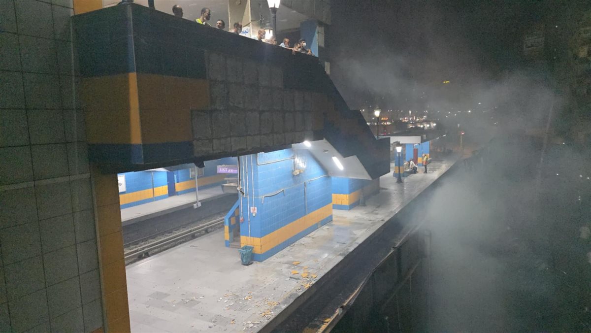 تساقط سيراميك سور مترو الأنفاق في محطة شبرا الخيمة بسبب حريق محلات شبرا الخيمة