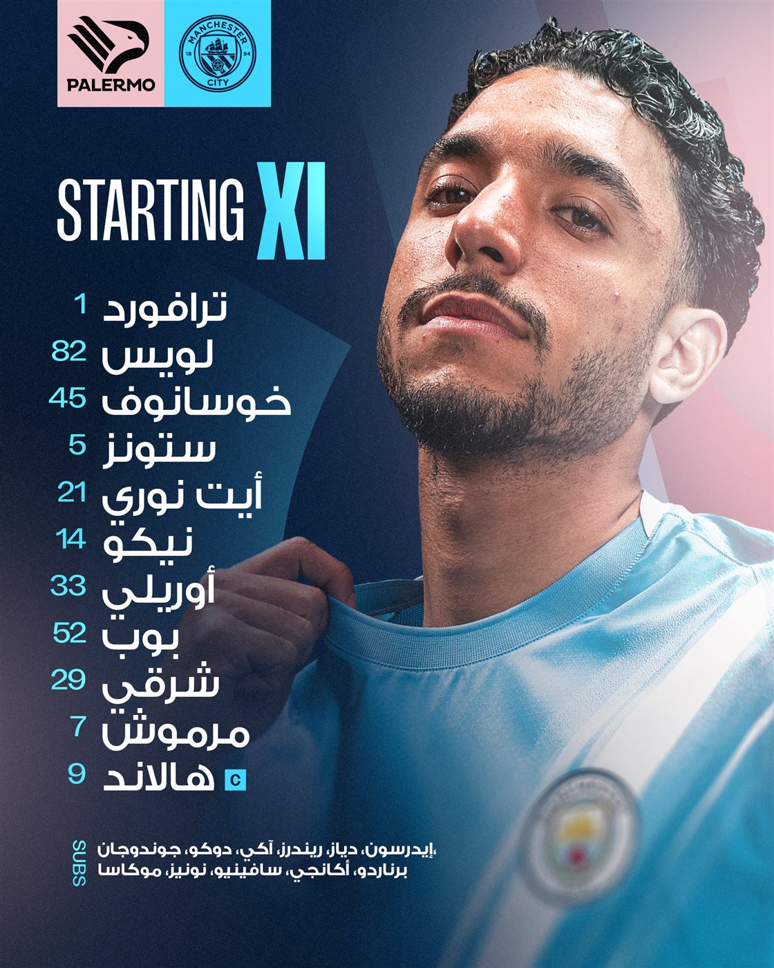 فاز فريق مانشستر سيتي الإنجليزي، المحترف ضمن صفوفه عمر مرموش نجم منتخب مصر، على باليرمو الإيطالي بنتيجة 3-0 في المباراة التي أقيمت على ملعب "رينزو باربيرا" في إيطاليا وديا.