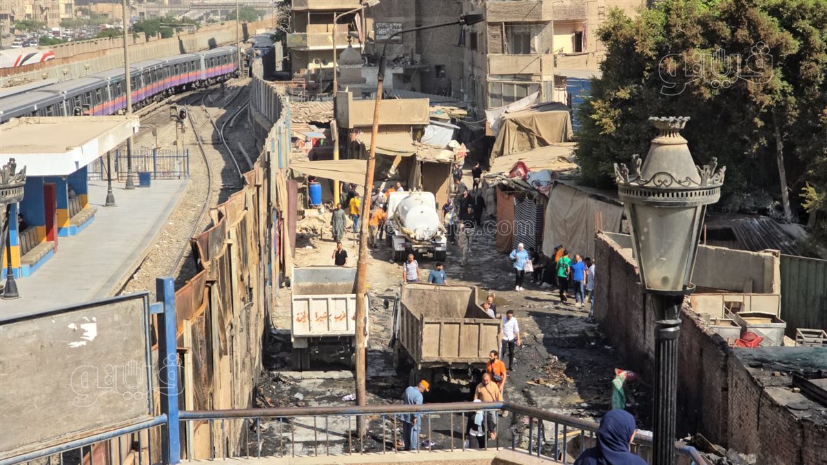 مجلس مدينة شبرا الخيمة يواصل رفع آثار حريق محلات شرق السكك الحديدية