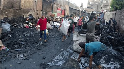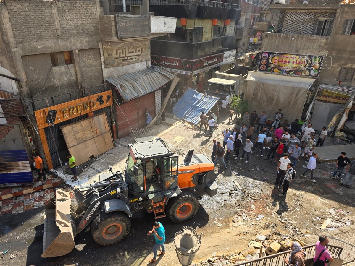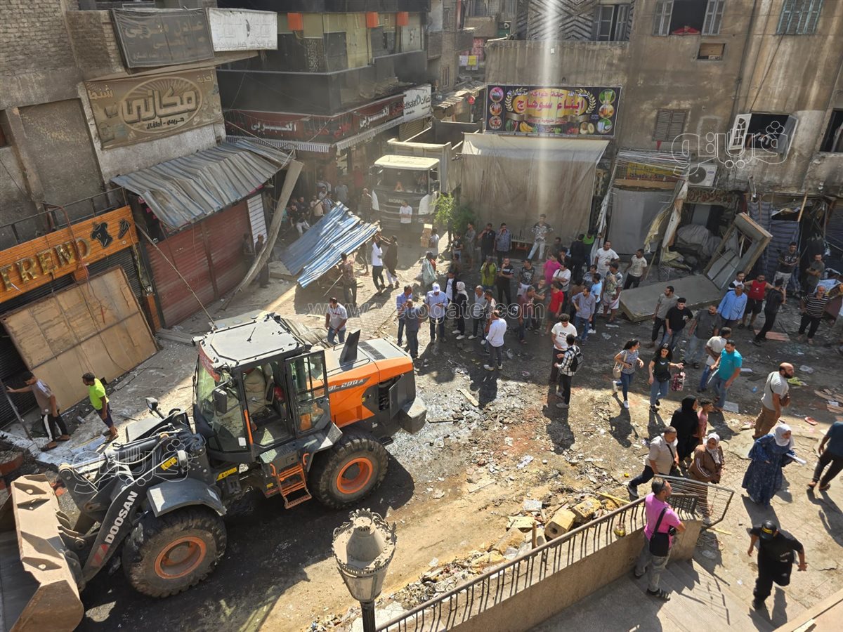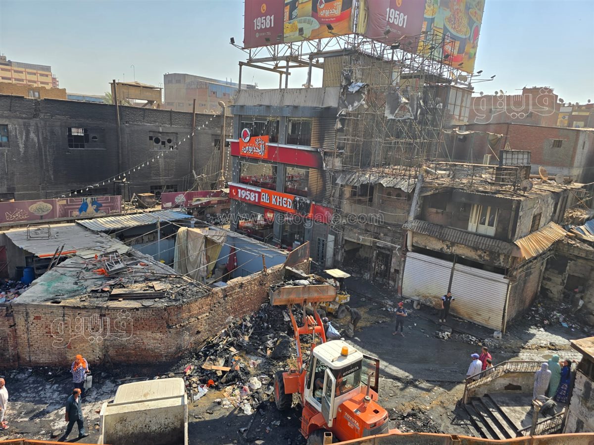 مجلس مدينة شبرا الخيمة يواصل رفع آثار حريق محلات شرق السكة الحديد (صور)