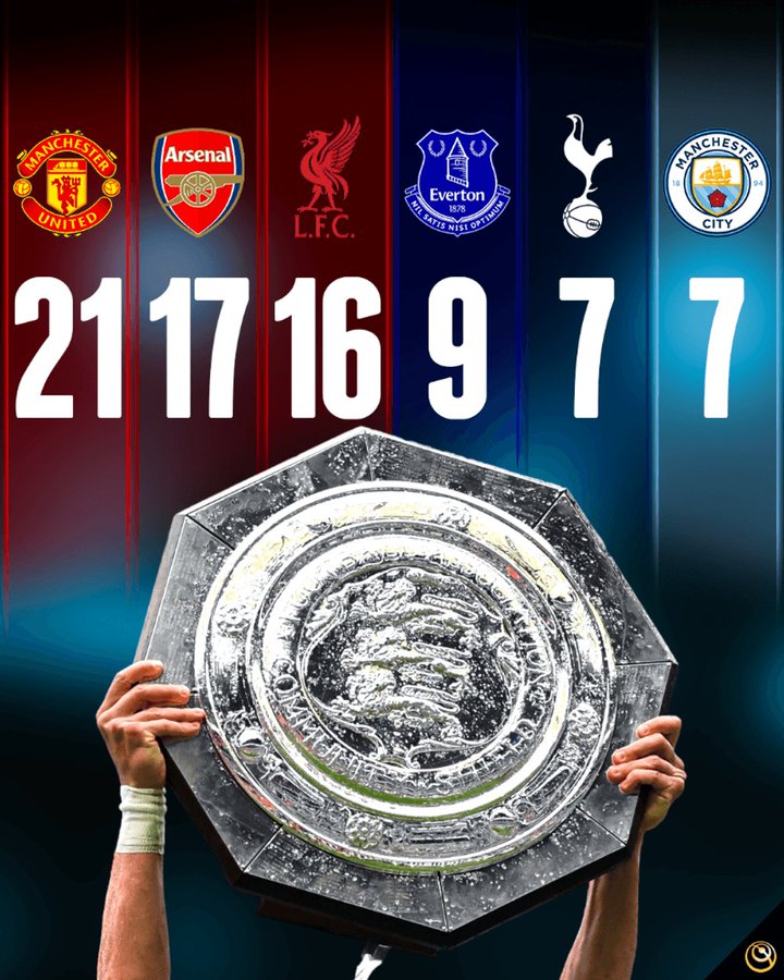 ويعد مانشستر يونايتد النادي الأكثر تتويجا باللقب برصيد 26 بطولة ويأتي في المركز الثاني نادي آرسنال برصيد 17 لقب.
