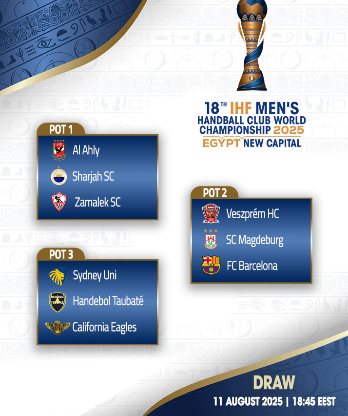 وتقام بطولة كأس العالم للأندية لكرة اليد “سوبر جلوب”، خلال الفترة من 26 سبتمبر المقبل وحتى 2 أكتوبر المقبل، بالعاصمة الإدارية الجديدة.