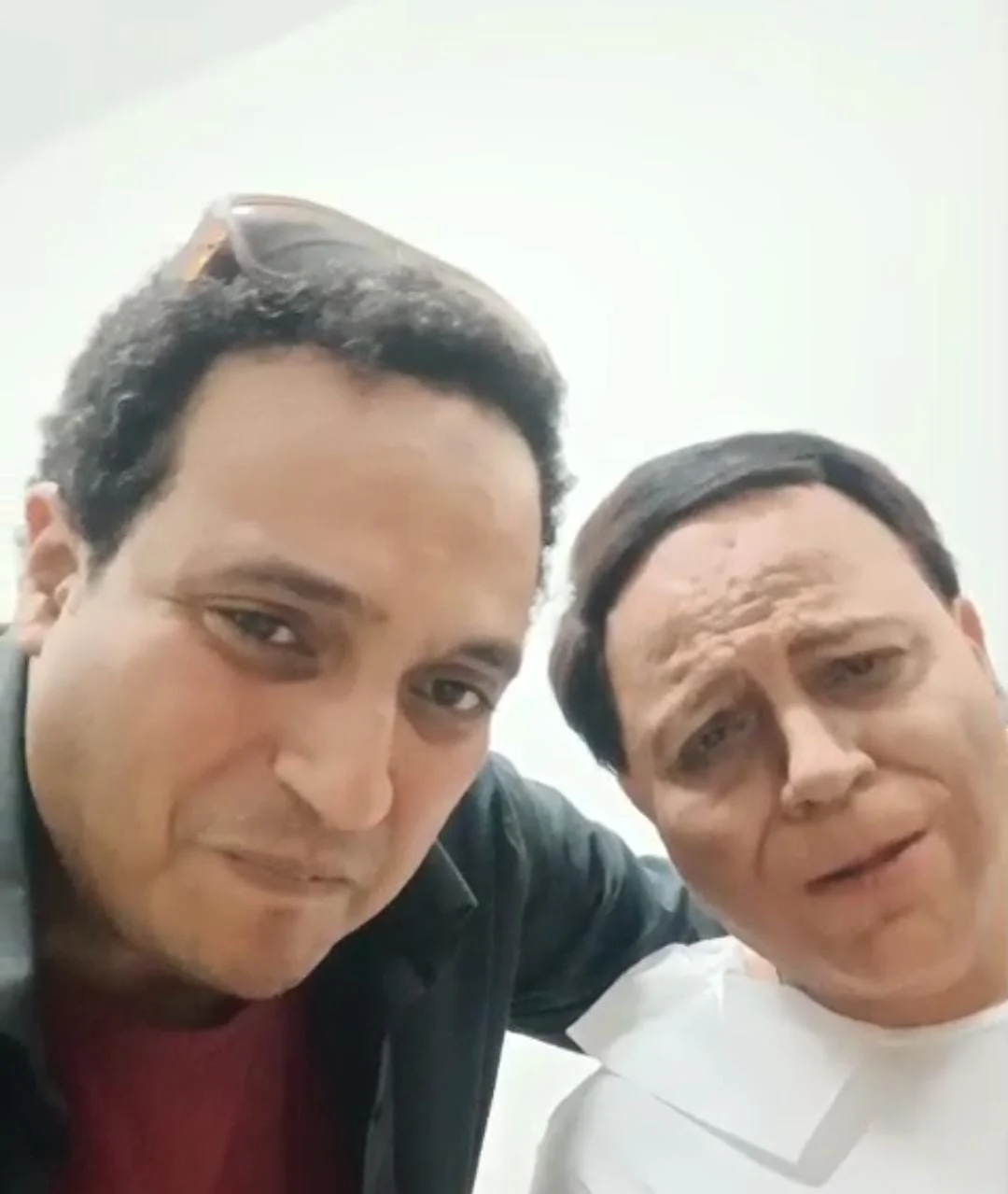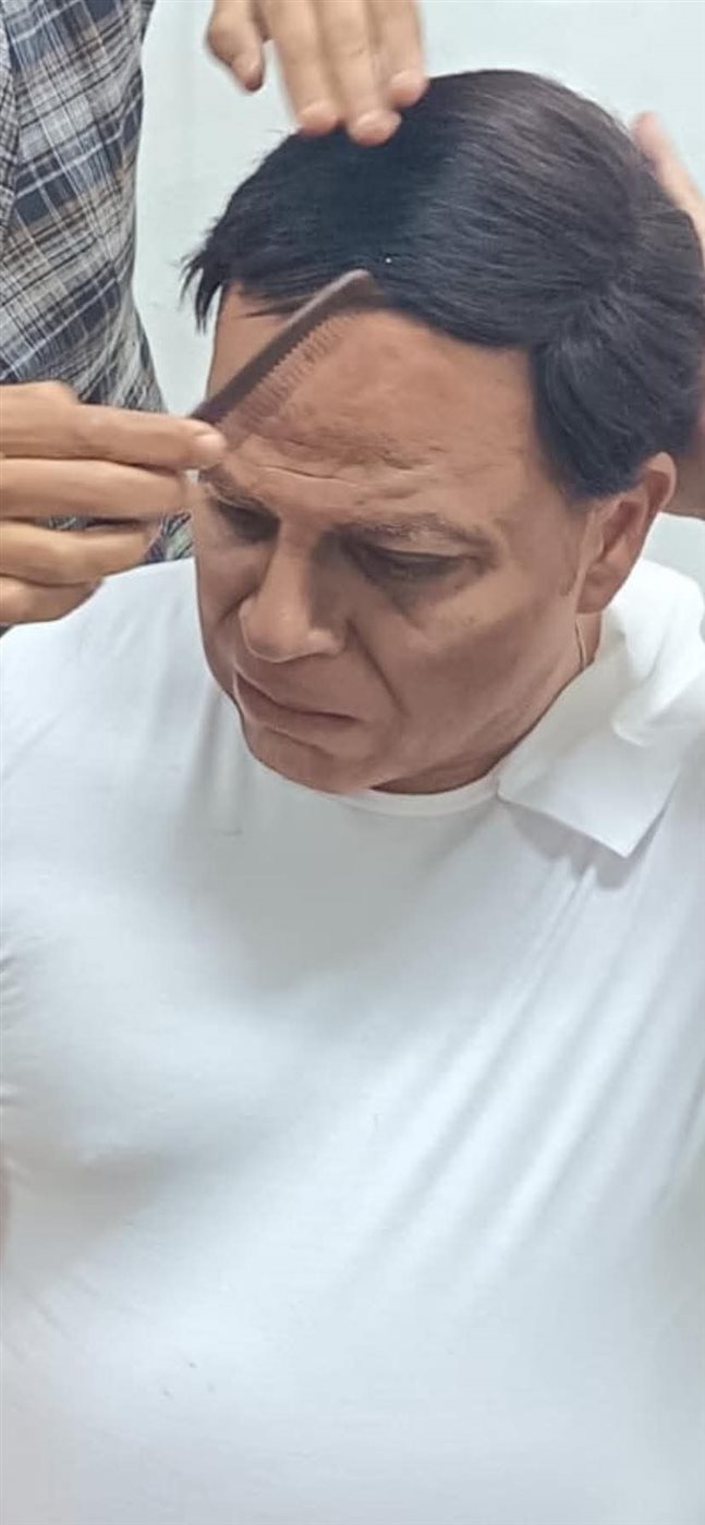 وأضاف: "وعليه قام الماكيير إسلام عباس بعمله والكوافيرة سلوى أحمد وأنا الآخر قمت بعملي وكانت هذه هي النتيجة... شكرًا إسلام أنت ماكير كبير، المسرح لا يعيقه شئ واحترام الجمهور واجب".