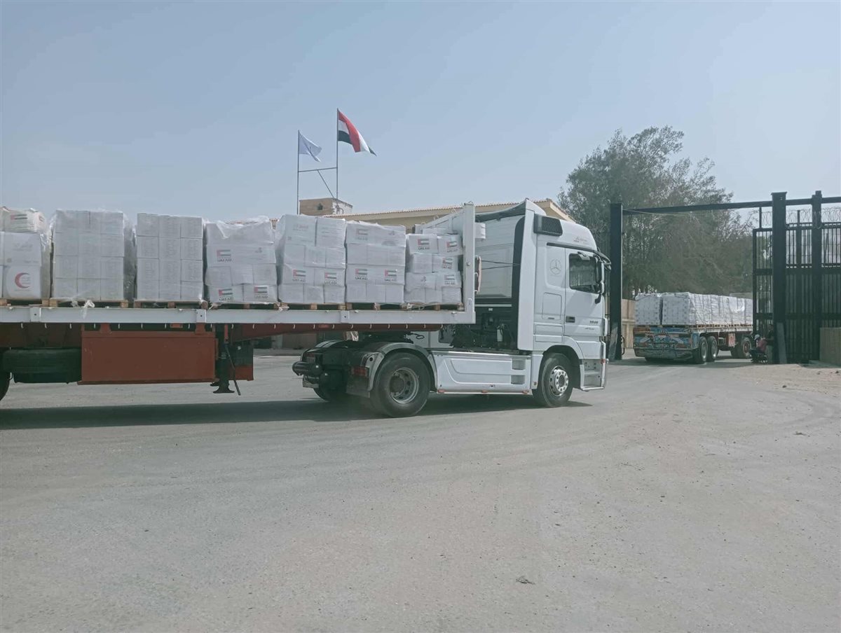 عبور 21 شاحنة مساعدات إماراتية عبر معبر رفح تمهيدًا لدخولها غزة