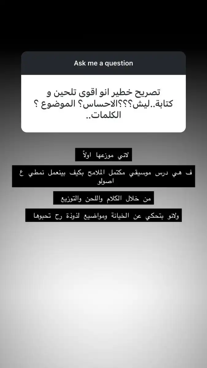 في تعليقات لاحقة، وصف الشامي أغنيته المنتظرة بأنها "أقوى تلحين وكتابة في مسيرته"، مضيفًا: لأني موزعها أولًا، فهي تُدرَّس موسيقيًّا، مكتملة الملامح من حيث صناعة النمط الموسيقي على أصوله من خلال الكلام، اللحن، والتوزيع.