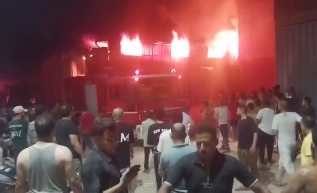 حريق مصنع للأحذية في مؤسسة الزكاة بالمرج
