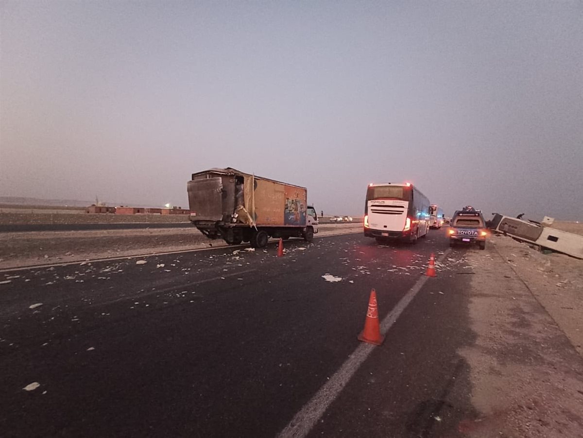 أصيب 30 شخصا في حادث تصادم بين أتوبيس نقل ركاب تابع لشركة شرق الدلتا وسيارة نصف نقل بطريق "أسيوط – البحر الأحمر" بنطاق مدينة أسيوط الجديدة.