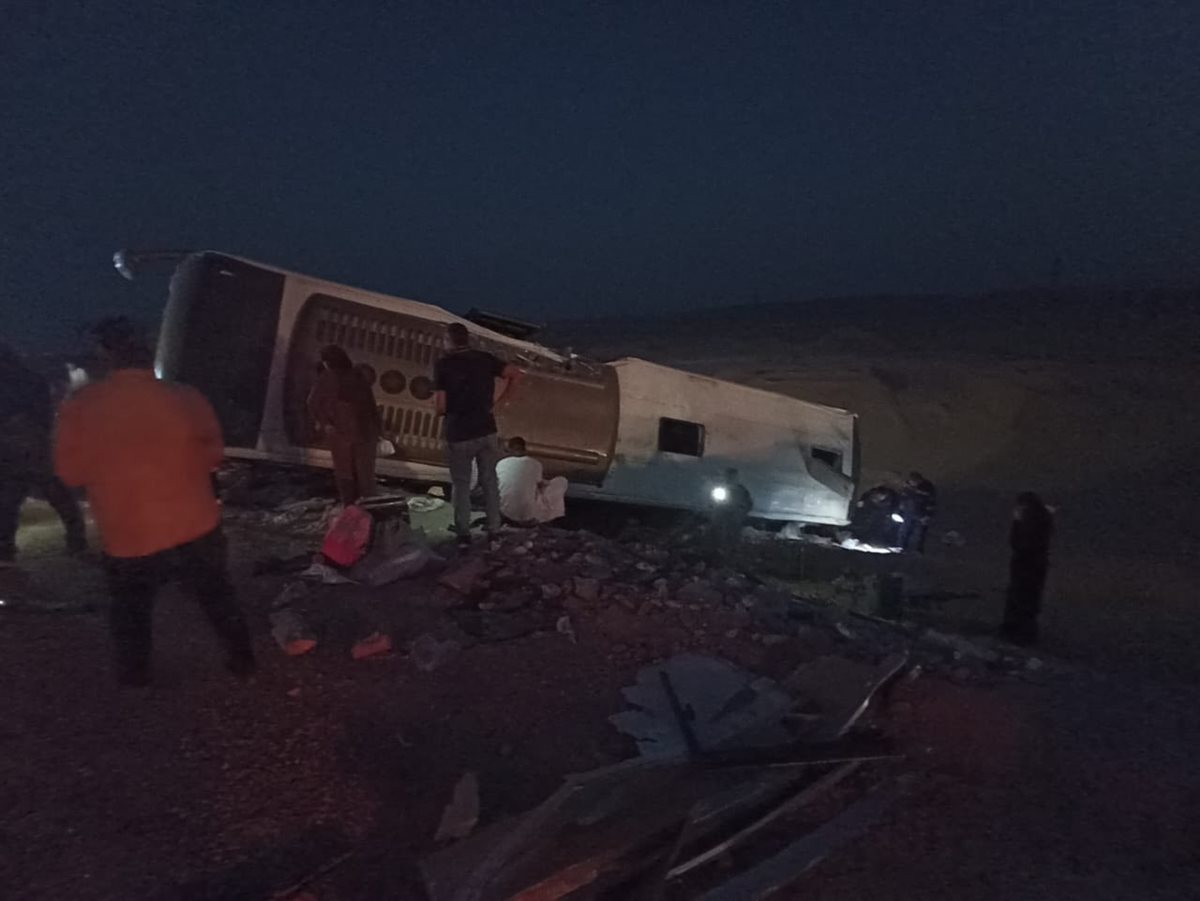 إصابة 30 شخصا في تصادم أتوبيس ركاب وسيارة نصف نقل بطريق أسيوط البحر الأحمر (صور)