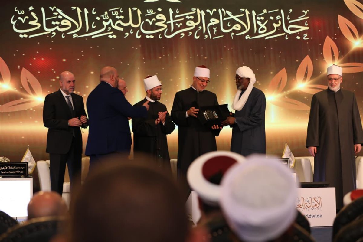 وفي ختام كلمته أعرب الشيخ أحمد النور محمد الحلو عن فخره واعتزازه بالتكريم الذي ناله من الأمانة العامة لدور وهيئات الإفتاء في العالم، بمنحه جائزةَ الإمام القرافي للتميز الإفتائي لهذا العام، مؤكدًا أن هذا التكريم يمثل تقديرًا لبلاده وحافزًا لمواصلة الجهد في خدمة العمل الإفتائي، وأوضح أن اسم الإمام القرافي يحظى بمكانة بارزة في تشاد، حيث توجد مؤسسة علمية رائدة تحمل اسمه منذ عشرين عامًا، تولى إدارتها والتدريس فيها لسنوات طويلة.