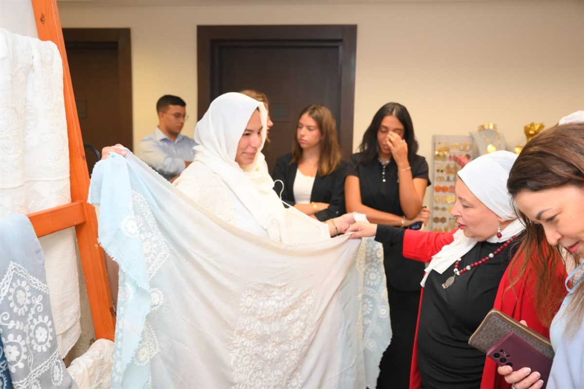 وتفقد الحضور أجنحة المعرض، مستمعين إلى شرح حول المعروضات التي توظف الخامات المحلية بتصميمات أصيلة تعكس التراث المصري، حيث أشادوا بجودة المنتجات والحرفية العالية.