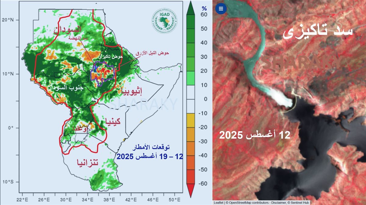 وكتب "شراقي" على صفحته الشخصية بـ"فيس بوك" تحت عنوان “زيادة الأمطار في حوض نهر عطبرة مع استمرار انخفاضها فى النيل الأزرق” وقال:" فتح بوابات سد تاكيزي نتيجة تزايد الأمطار عن معدلاتها في حوض نهر عطبرة الذي يمد النيل بنحو 11 مليار م3 سنويًّا (13%)، مع استمرار انخفاض الأمطار فى حوض النيل الأزرق حتى الأسبوع القادم أيضًا".
