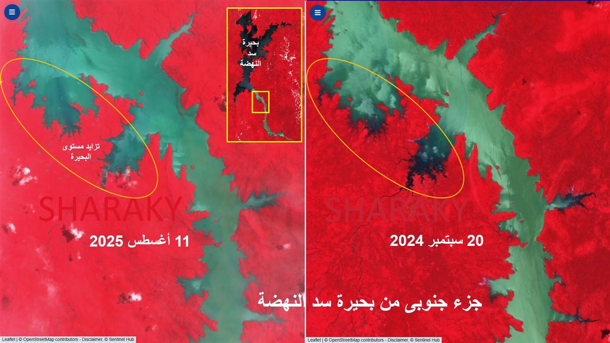 وأضاف: "بحيرة سد النهضة تخطت مخزون العام الماضي الذي توقف عند 60 مليار م3، ومستوى 638 م، ويظهر ذلك من خلال صور الأقمار الصناعية للجزء الجنوبي من البحيرة الخالي من السحب التي تغطي معظم منطقة سد النهضة".