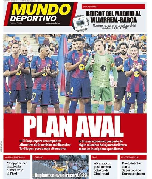 غلاف موندو ديبورتيفو: برشلونة ينتظر رد اللجنة الطبية بشأن حالة تير شتيجن، ويدرس بدائل محتملة لتسجيل الصفقات.