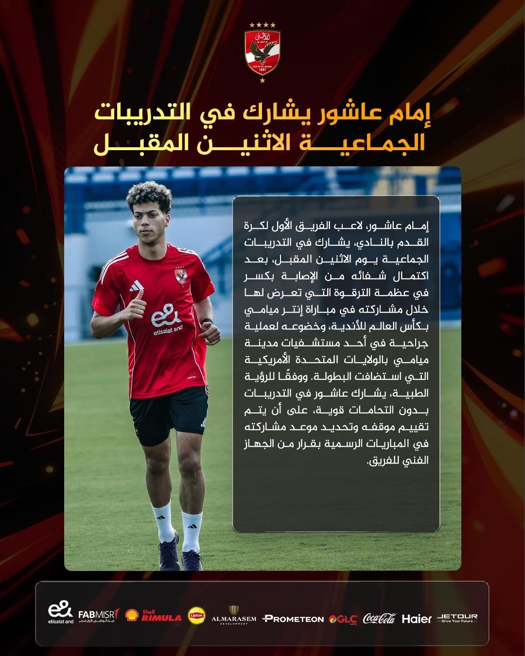 كشف النادي الأهلي رسميا عن موعد إعلان مشاركة إمام عاشور لاعب الفريق في التدريبات الجماعية.