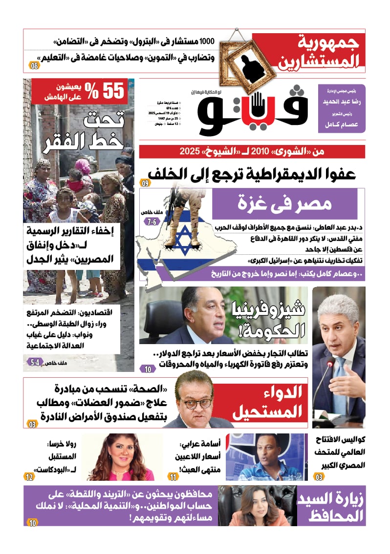 تكشف فيتو في عددها الجديد أن 55 % من الشعب يعيشون على الهامش تحت خط الفقر، إخفاء التقارير الرسمية لـ«دخل وإنفاق المصريين» يثير الجدل.. واقتصاديون: التضخم المرتفع وراء زوال الطبقة الوسطى.. ونواب: دليل على غياب العدالة الاجتماعية.