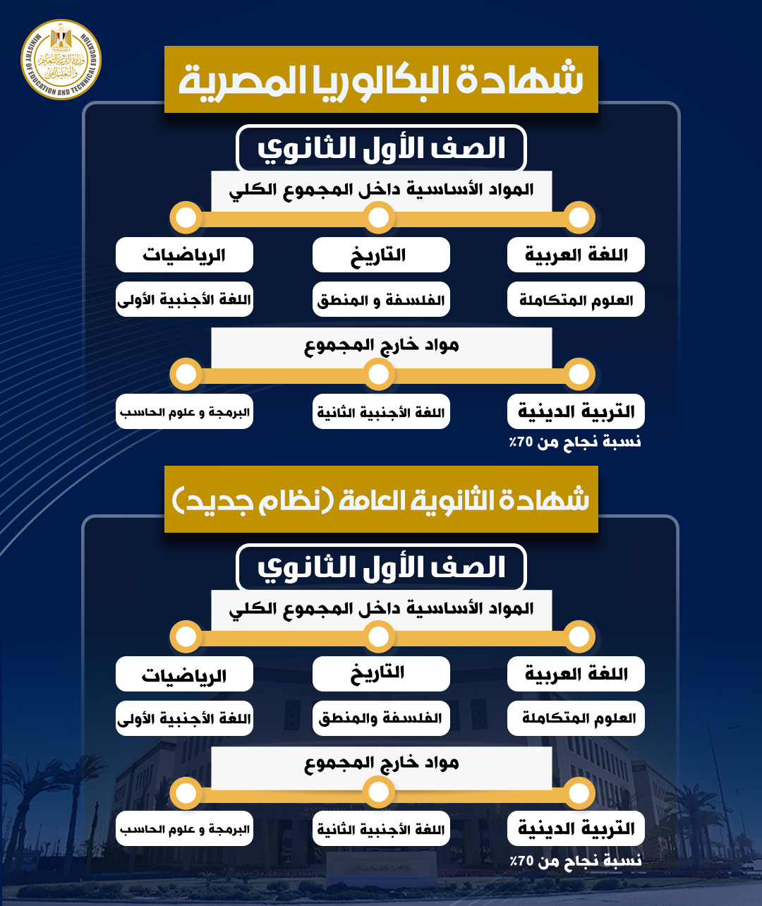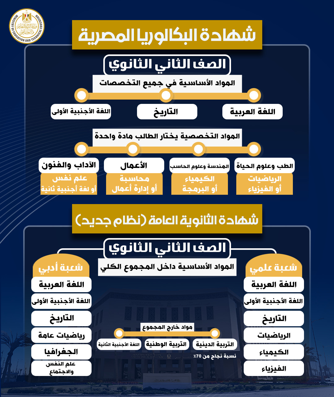 قدمت وزارة التربية والتعليم والتعليم الفني شرحا تفصيليا للمواد الدراسية في كل من نظام شهادة البكالوريا المصرية ونظام شهادة الثانوية العامة وأهم القواعد المنظمة، وذلك في إطار حرصها المتواصل على توعية أولياء الأمور والطلاب بتفاصيل كل نظام.