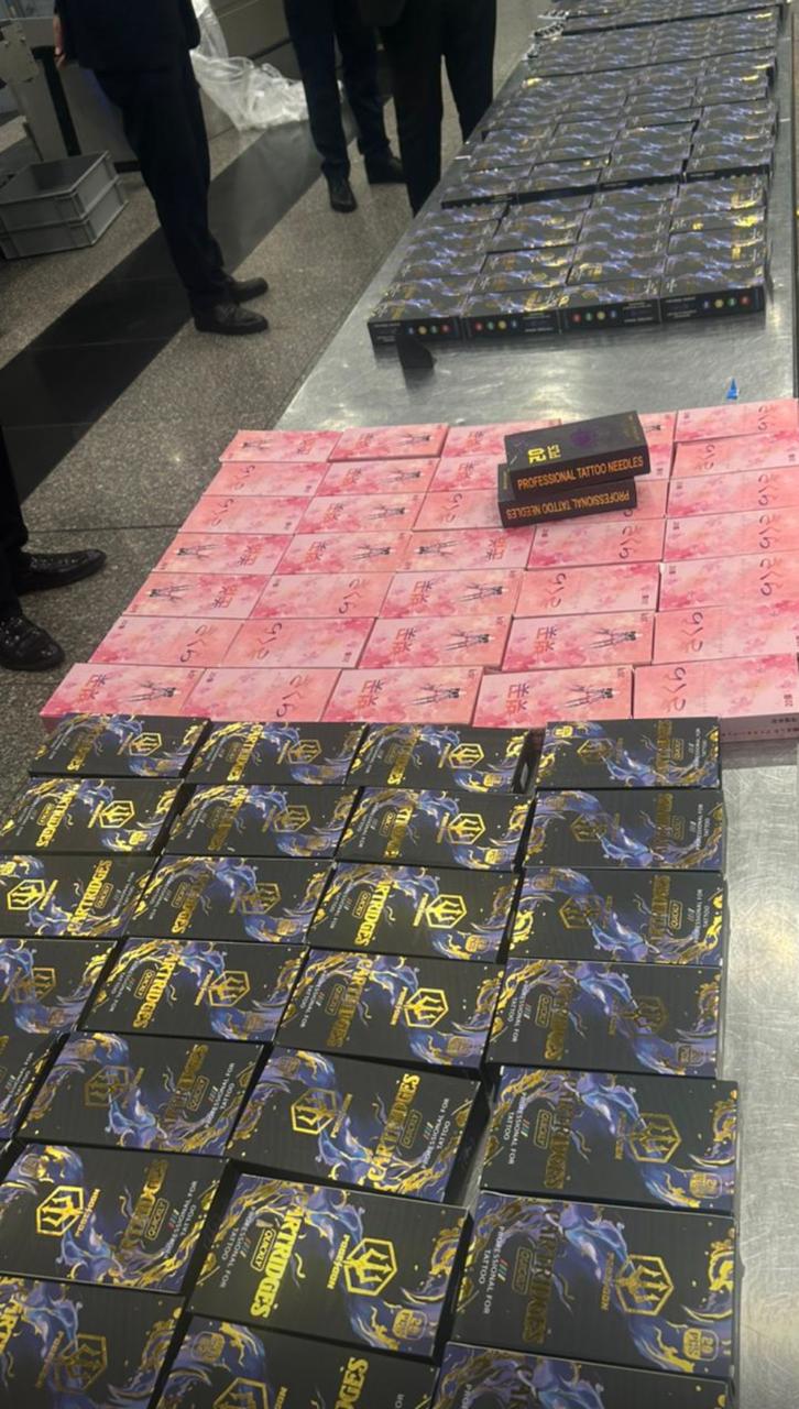 وحرر رجال الإدارة الأولى بقيادة مصطفي حلمي الجندي مدير الإدارة ونائبه أحمد عمر كحك محضر ضبط جمركي رقم ٩٦ لسنة ٢٠٢٥ ضد راكب أجنبي حاول تهريب أربعة آلاف إبرة رسم "تاتو".